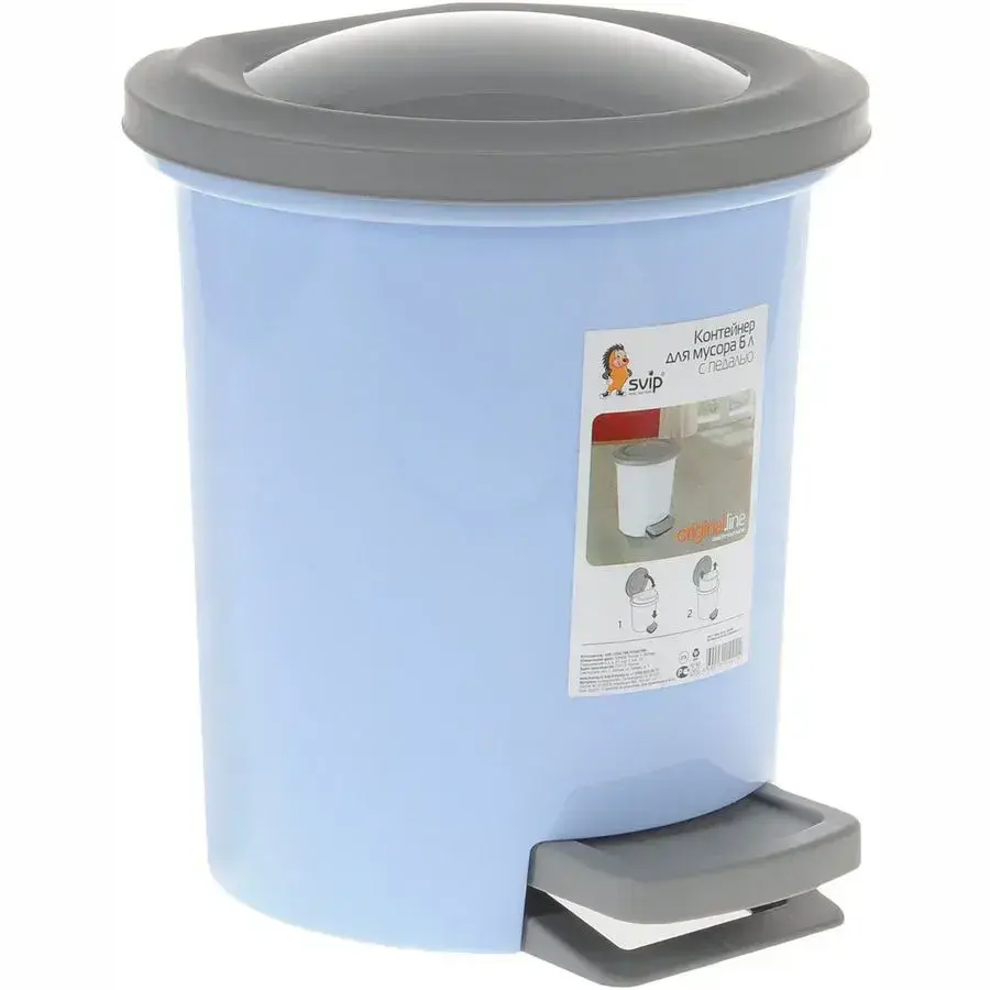 Контейнер для мусора с педалью Vogue 6 л, пластик, цвет небесный