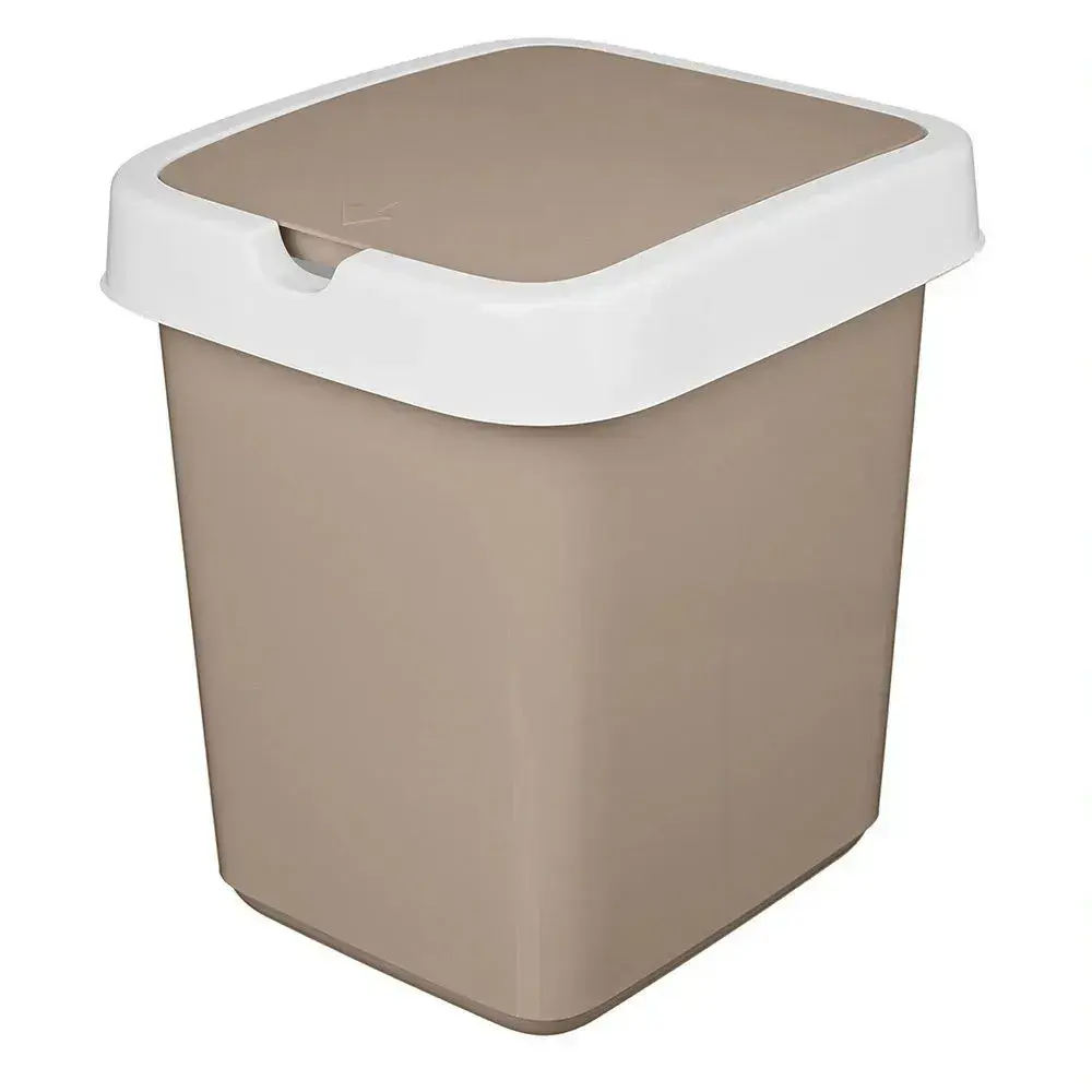 Контейнер для мусора пластиковый 9л с крышкой, прямоугольный, бежевый