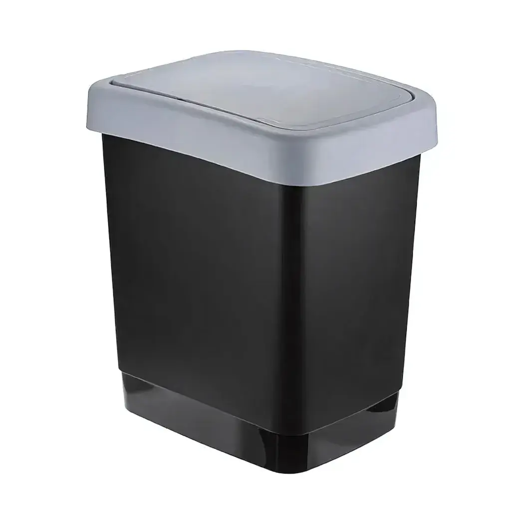 Контейнер для мусора 'ТВИН' 18л, серый, прямоугольный, с крышкой