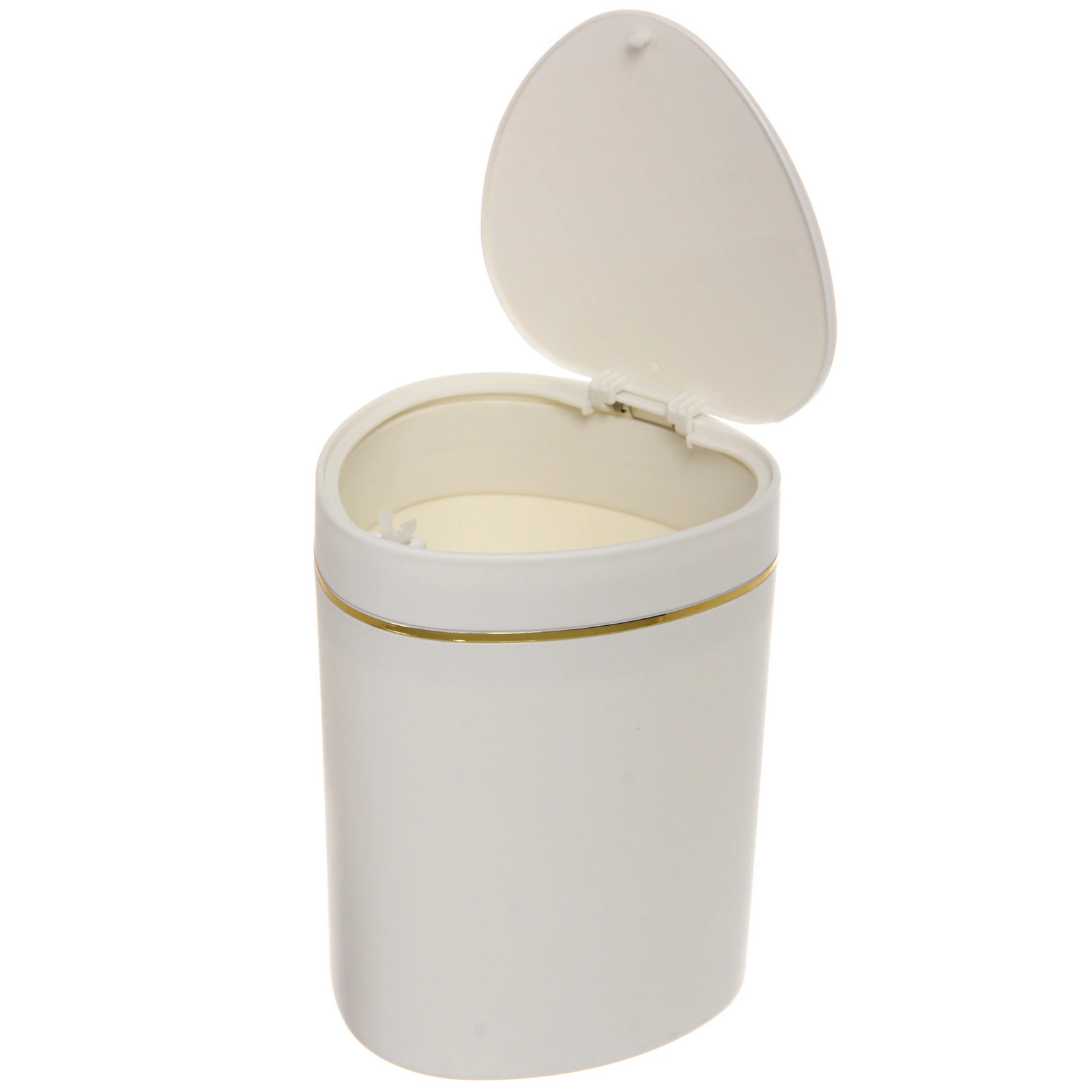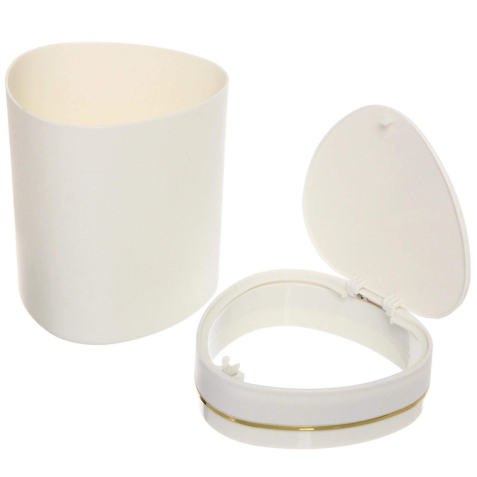 Контейнер оснащен крышкой, которая помогает скрыть содержимое и минимизировать распространение запахов. Откидной механизм обеспечивает быстрый доступ внутрь — это особенно удобно при частом использовании. Изделие подходит для сбора мелкого бытового мусора: салфеток, ватных дисков, упаковок, чайных пакетиков и других небольших отходов.