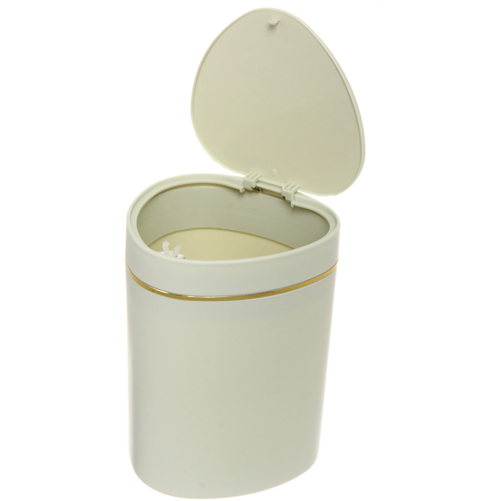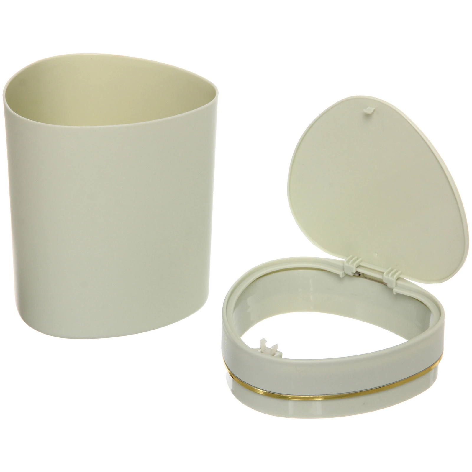 Модель выполнена из пластика с матовой поверхностью, устойчивой к повседневному использованию. Съемная верхняя рамка облегчает установку пакета и упрощает уход за изделием. Внутренняя часть светлого оттенка делает содержимое менее заметным, а декоративная золотистая полоса добавляет аккуратный акцент во внешний вид.