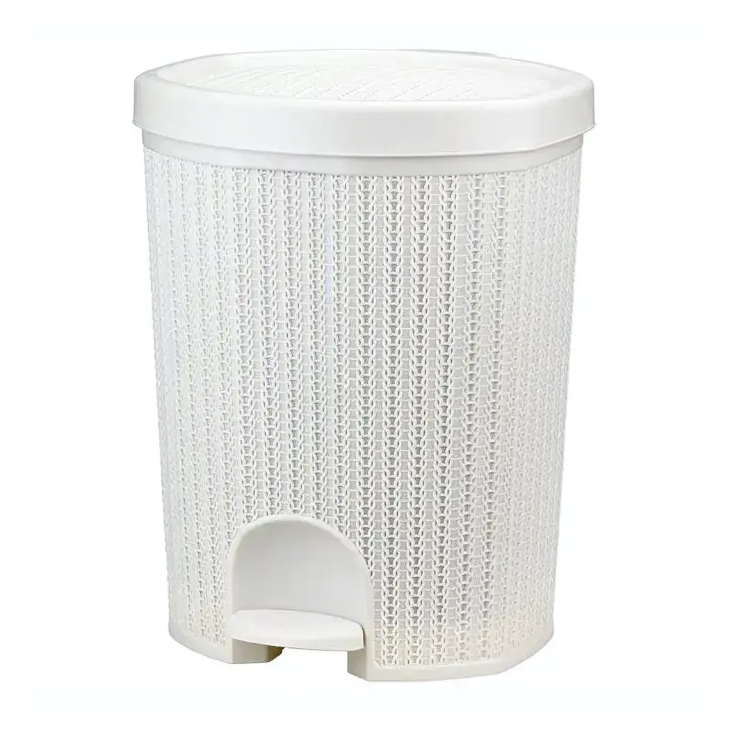 Контейнер для мусора 18л с педалью, пластик, дизайн «ротанг», белый цвет