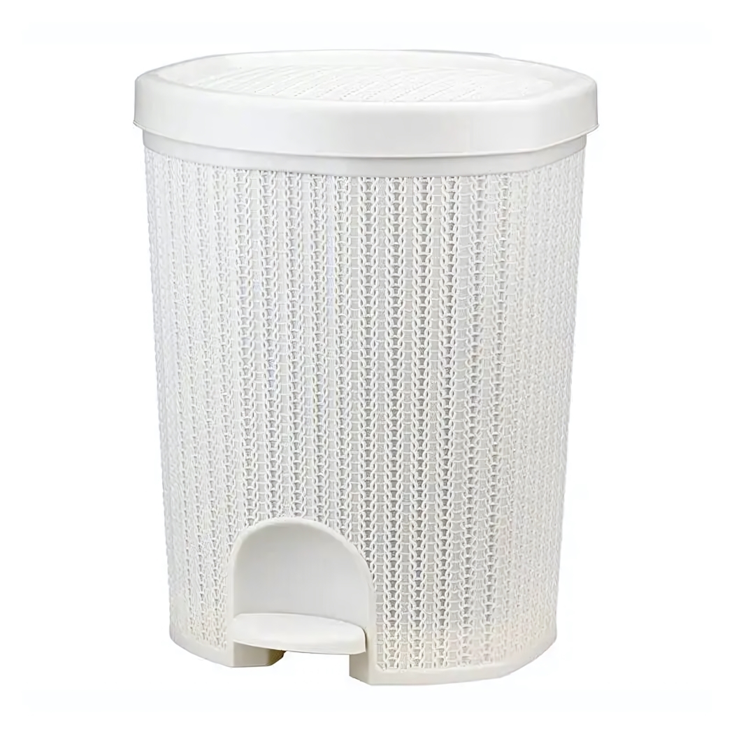 Практичное решение для уборки с педальным механизмом и элегантным дизайном. Идеально впишется в интерьер кухни, ванной или офиса благодаря лаконичному белому цвету и фактуре натурального ротанга.