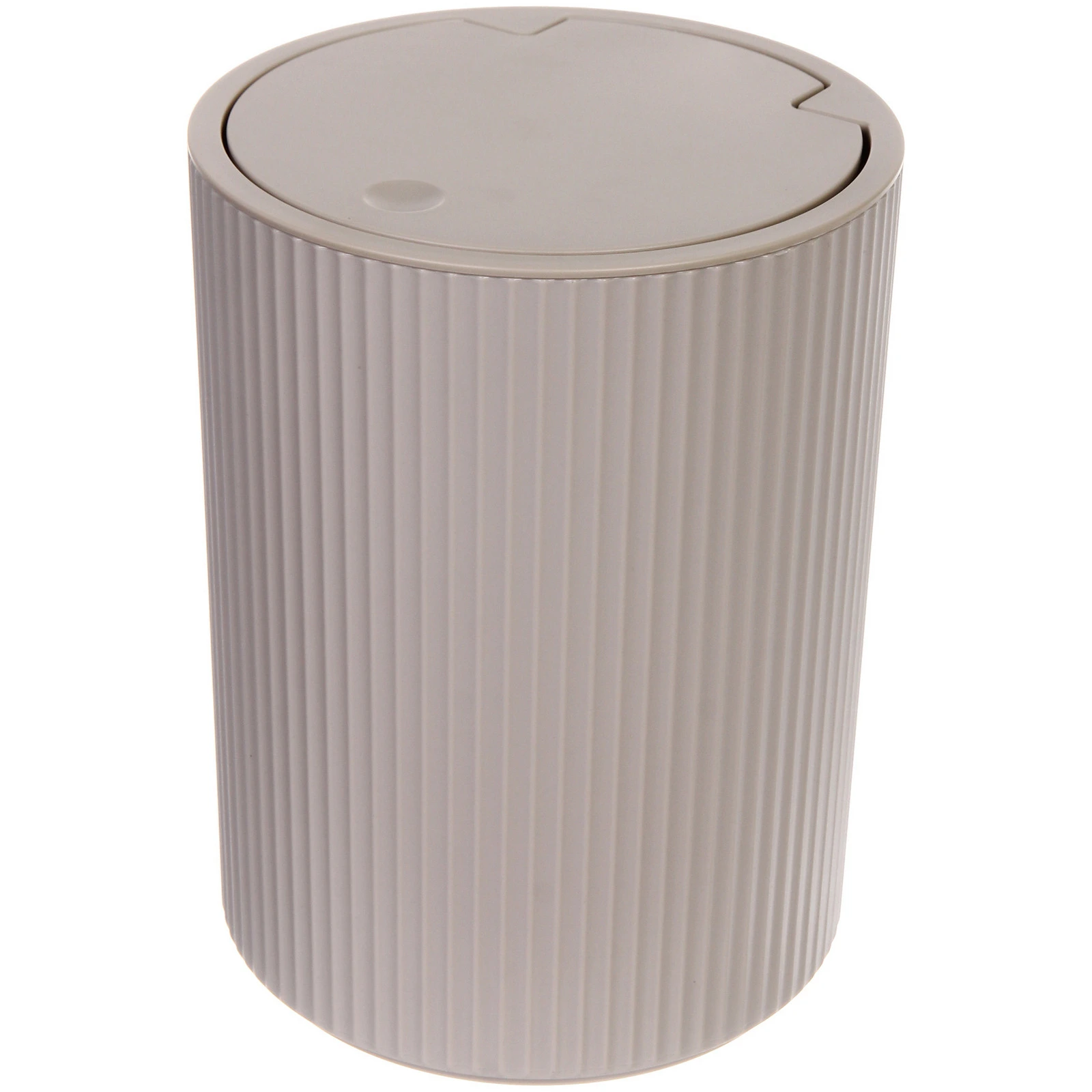 Контейнер выполнен из пластика, устойчивого к влаге и бытовым загрязнениям. Внутренняя поверхность гладкая, что облегчает очистку. Цилиндрическая форма и продуманная конструкция делают модель универсальной для дома: она подойдет для сбора бытового мусора, бумажных отходов или использования в ванной комнате.
