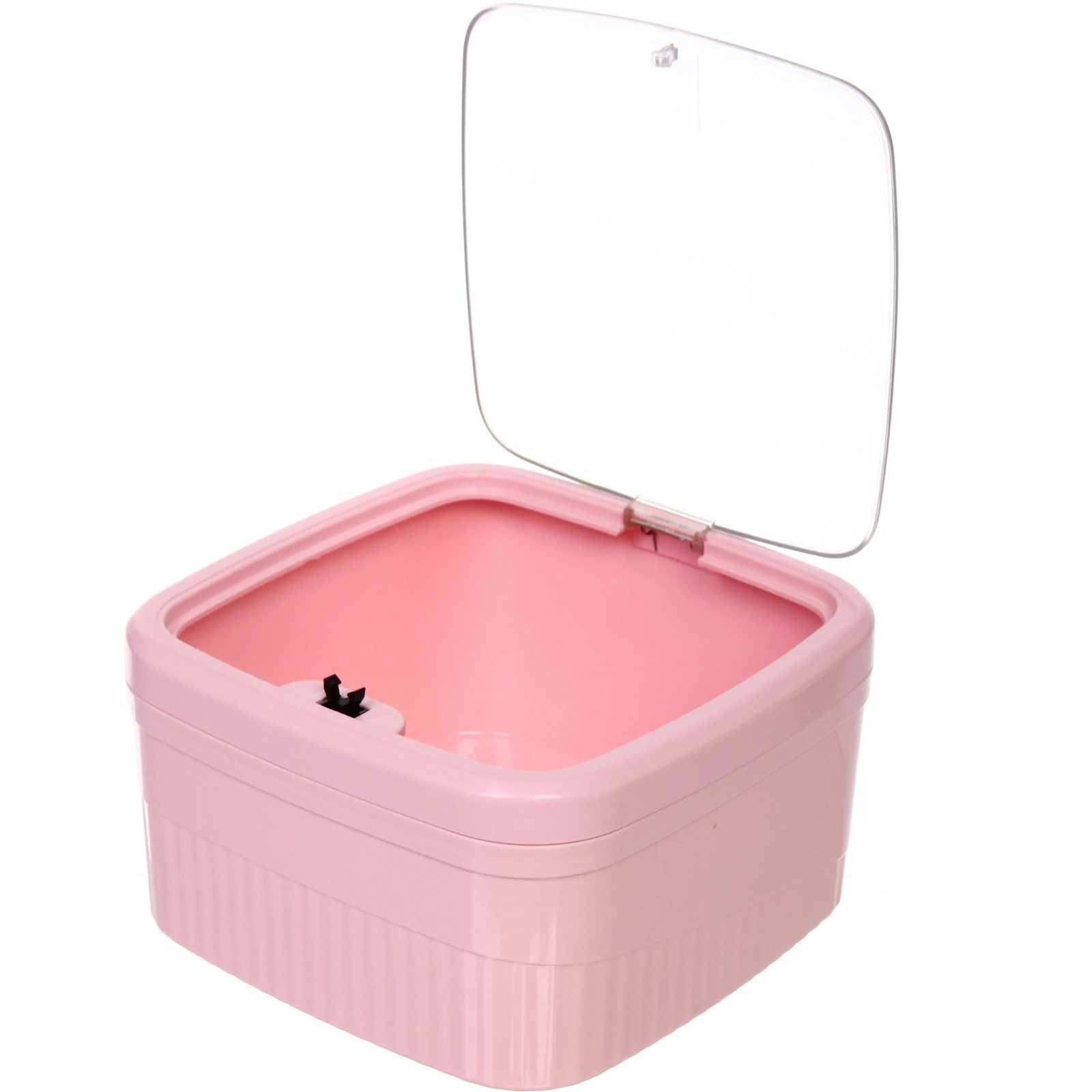 Модель оснащена откидной крышкой с прозрачной вставкой, что позволяет контролировать наполнение и при этом скрывать содержимое от глаз. Компактный размер делает контейнер удобным для размещения: