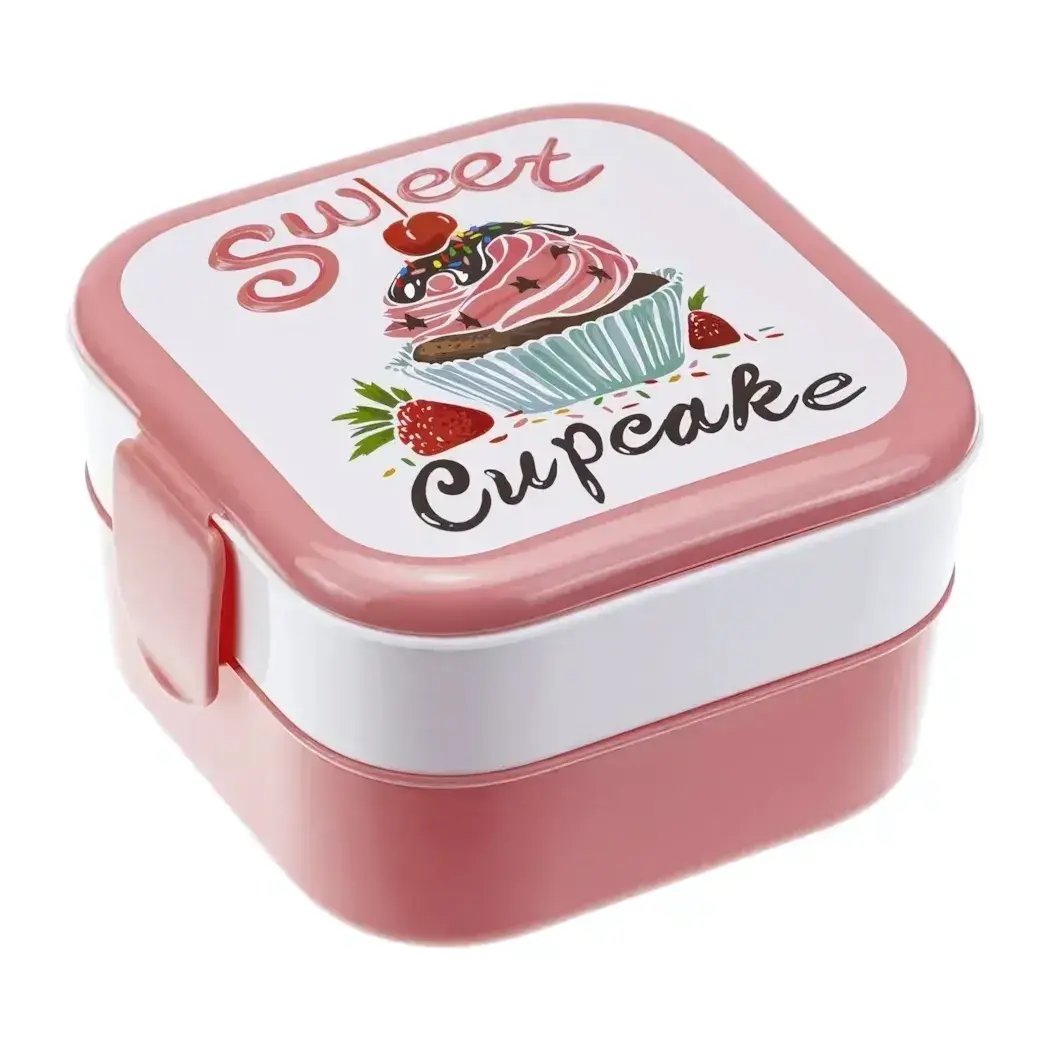 Контейнер для еды герметичный, 2 отделения 0.4+0.4 л, дизайн 'Sweet Cupcake', пластик, цвет в ассортименте