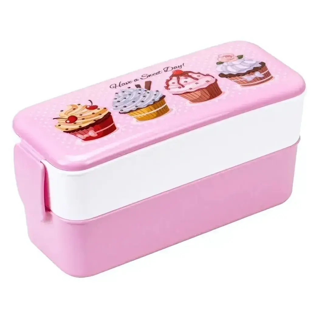 Контейнер для обеда с отделениями 0,5+0,5л, дизайн с капкейками, пластиковый, цвет в ассортименте