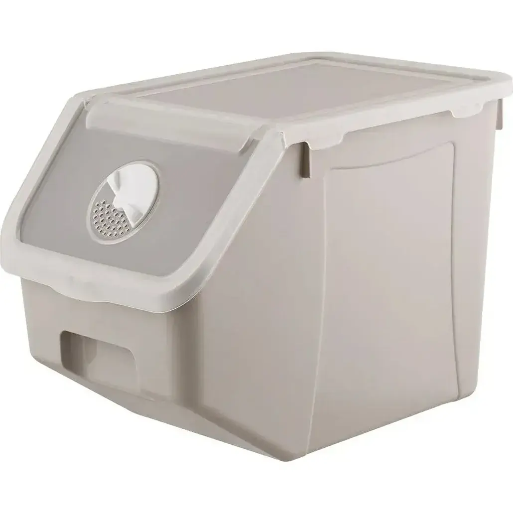 Контейнер для овощей с крышкой, 14л, пластик, ручка для переноски, бежевый