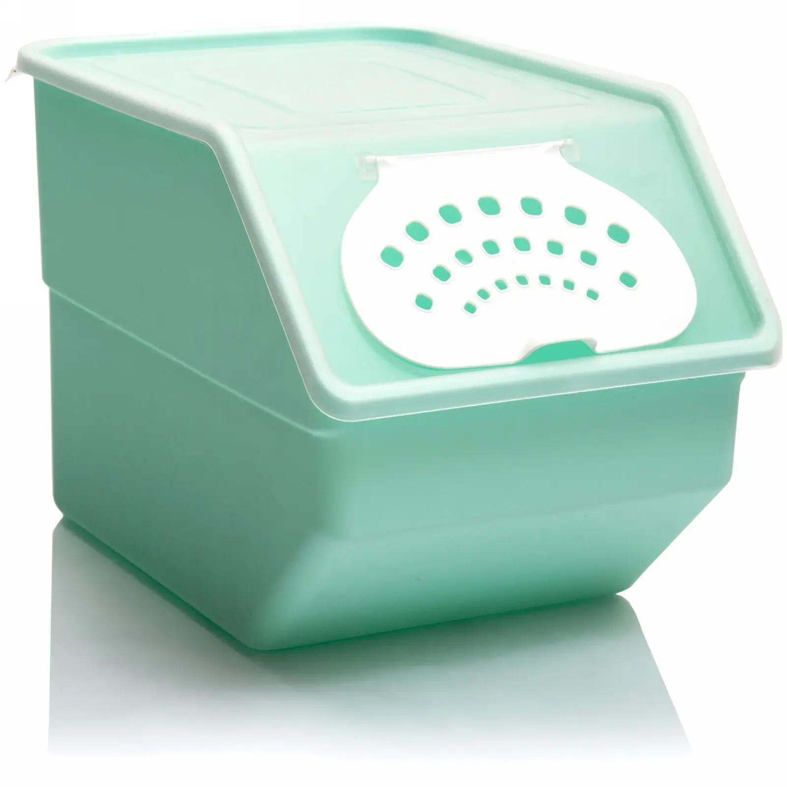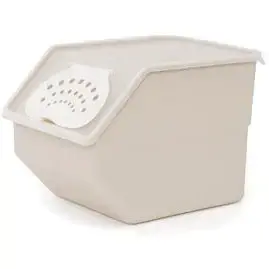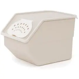 Контейнер имеет удобную вентиляцию, оснащен закрывающимся окошком с отверстиями разного диаметра, что позволяет обеспечить необходимый приток воздуха для хранения овощей. Откидывающееся окошко позволяет легко доставать продукты, не открывая весь контейнер. Это делает его идеальным для использования на кухне, в прихожей или даже на балконе — в зависимости от ваших потребностей.