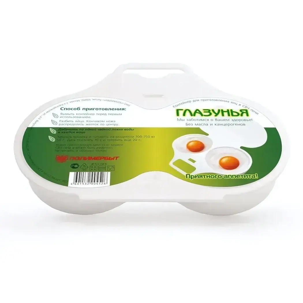 Контейнер для микроволновки 'Глазунья' на 2 яйца, пластиковый, белый, для здорового питания без масла