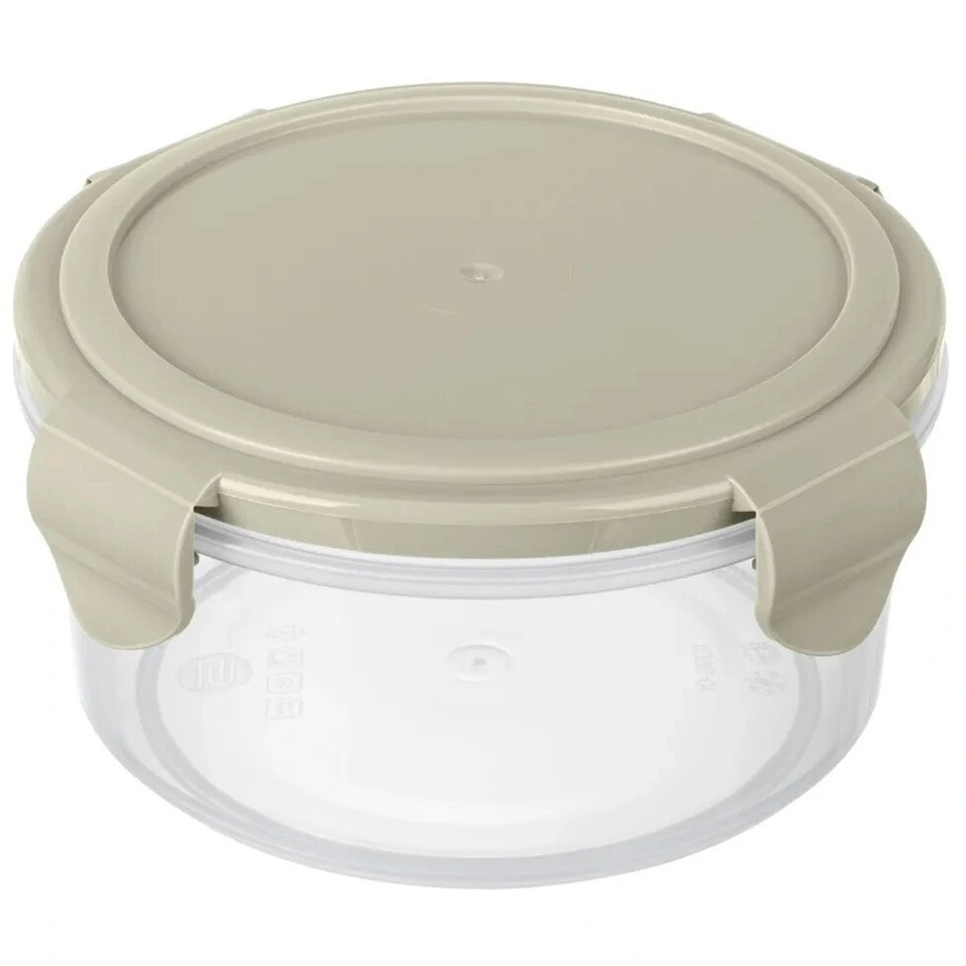 Объем контейнера — 0,55 л. Цвет крышки — светло-серый, форма — круглая. Прозрачные стенки позволяют легко контролировать содержимое. Контейнер станет удобным помощником на кухне и поможет организовать аккуратное хранение продуктов каждый день.