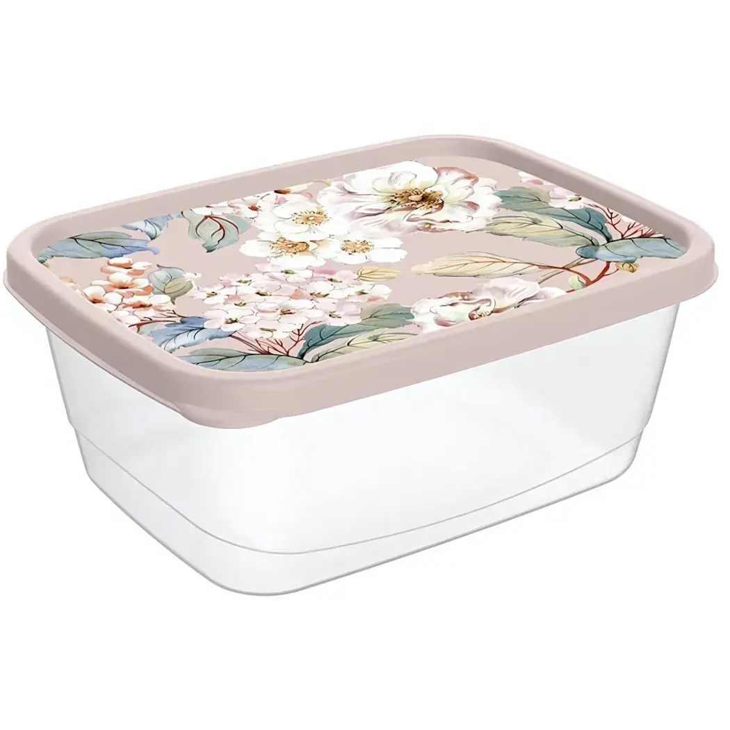 Контейнер для продуктов 0,5л, с цветочным декором, бежевый/прозрачный