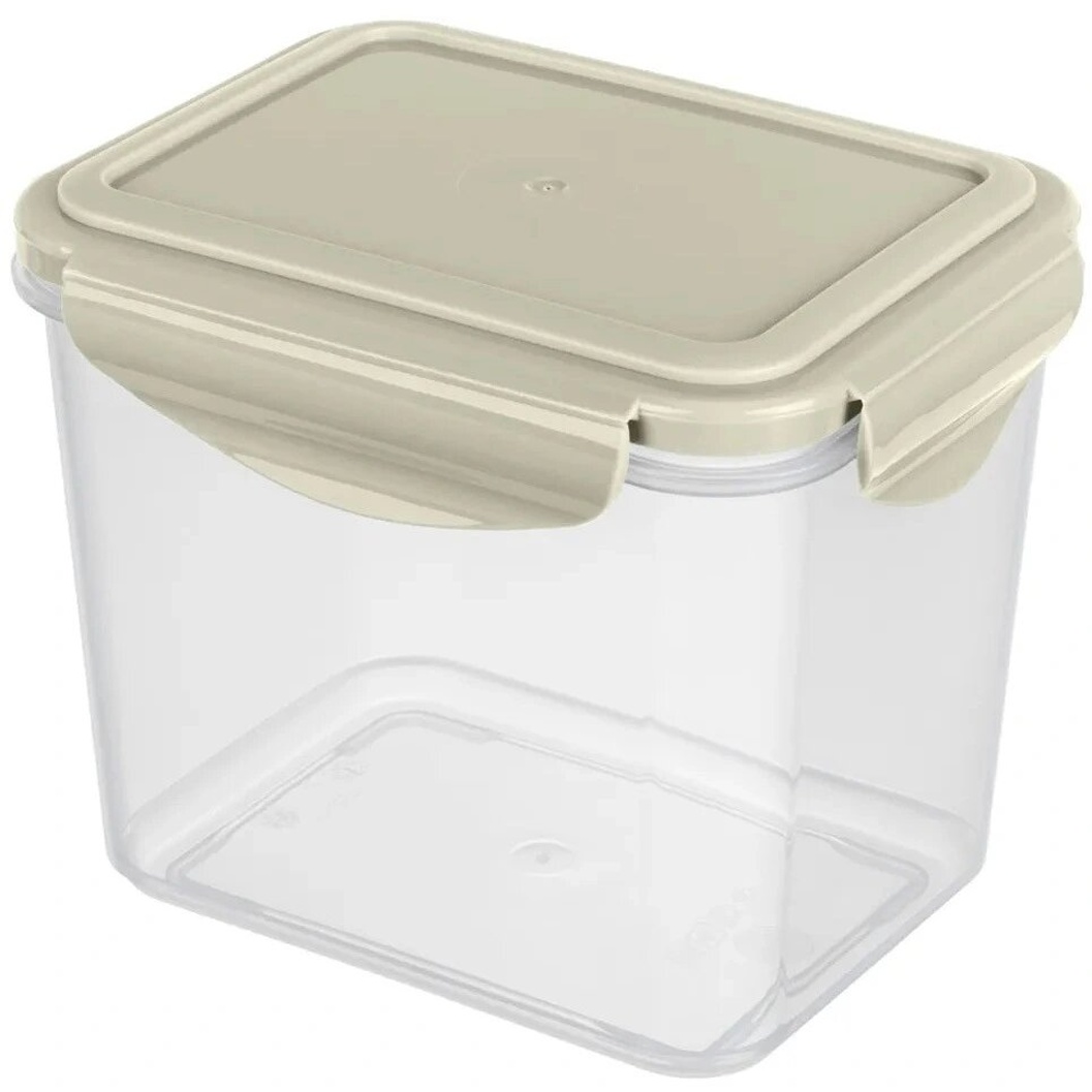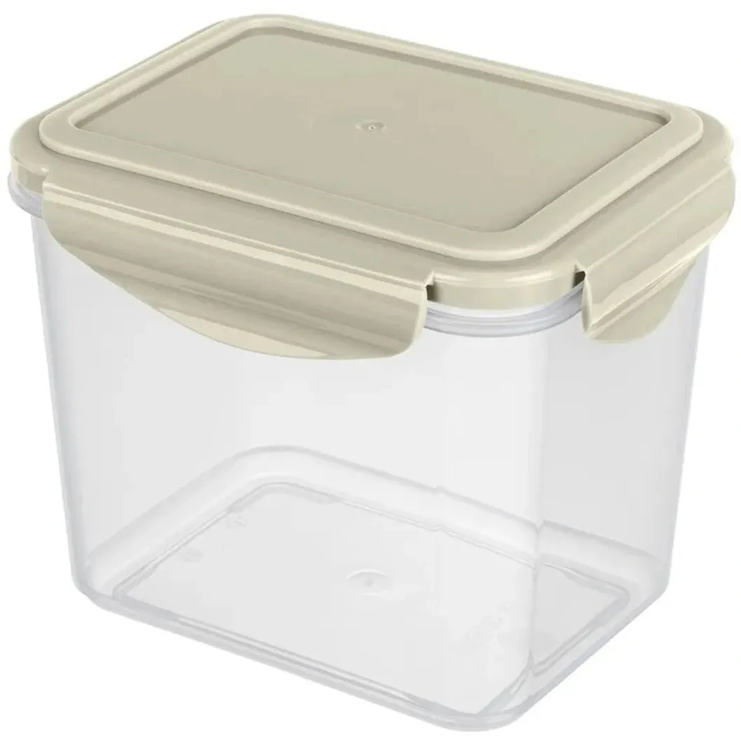 Прямоугольная форма позволяет компактно размещать контейнер на полках холодильника и удобно ставить несколько ёмкостей рядом. Прозрачные стенки дают возможность быстро увидеть содержимое, а светло-серая крышка выглядит аккуратно и нейтрально. Контейнер изготовлен из безопасного пластика, разрешённого для контакта с пищевыми продуктами, что делает его подходящим для ежедневного использования всей семьёй.