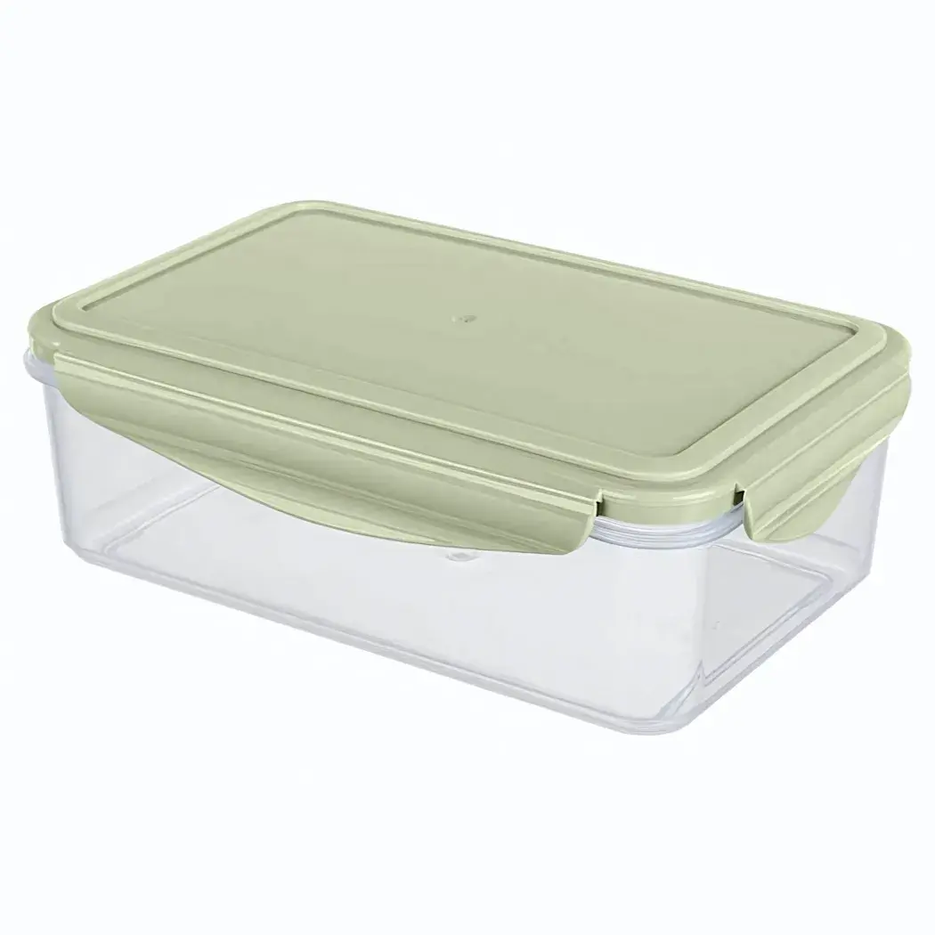 Контейнер подходит для хранения различных продуктов: от овощей и фруктов до готовых блюд. Он может использоваться в холодильнике, морозильной камере и даже в микроволновой печи, что делает его универсальным помощником на кухне. Прозрачные стенки позволяют видеть содержимое, а светло-зеленая крышка добавляет яркий акцент в интерьер.
