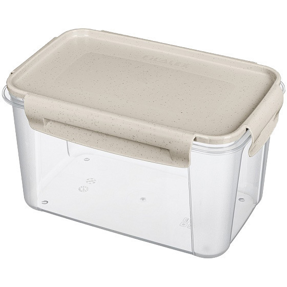 Контейнер имеет прямоугольную форму с закругленными углами, что делает его удобным для использования. Цвет крышки варьируется от светло-бежевого до светло-зеленого, что добавляет разнообразия в вашу кухонную утварь. Размер контейнера позволяет хранить достаточно большое количество продуктов, что делает его идеальным для семейного использования.