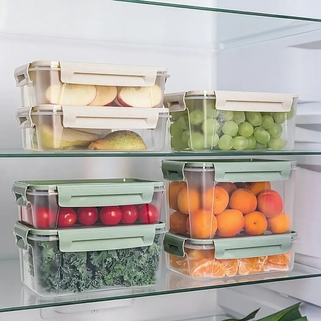 - Организация хранения: прозрачные стенки и компактные размеры позволяют удобно размещать контейнеры в холодильнике, сохраняя порядок.