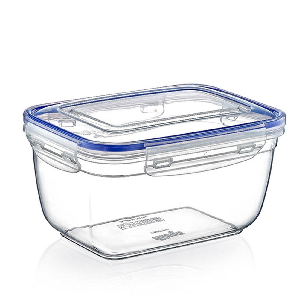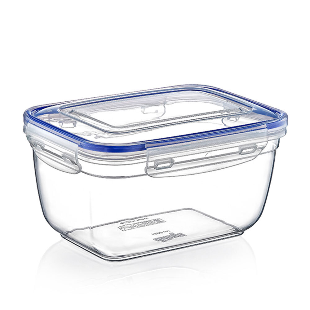 Практичный контейнер объемом 1,8 литра поможет сохранить свежесть ваших продуктов, защитив их от влаги, запахов и посторонних примесей. Его прозрачные стенки позволяют легко контролировать содержимое, а стильная синяя крышка с плотными боковыми защёлками гарантирует полную герметичность.