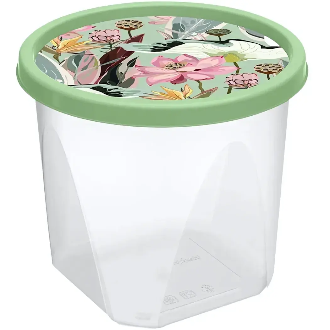 Пищевой контейнер 1л «Botanica» с цветочным декором, зеленая крышка, для СВЧ и заморозки