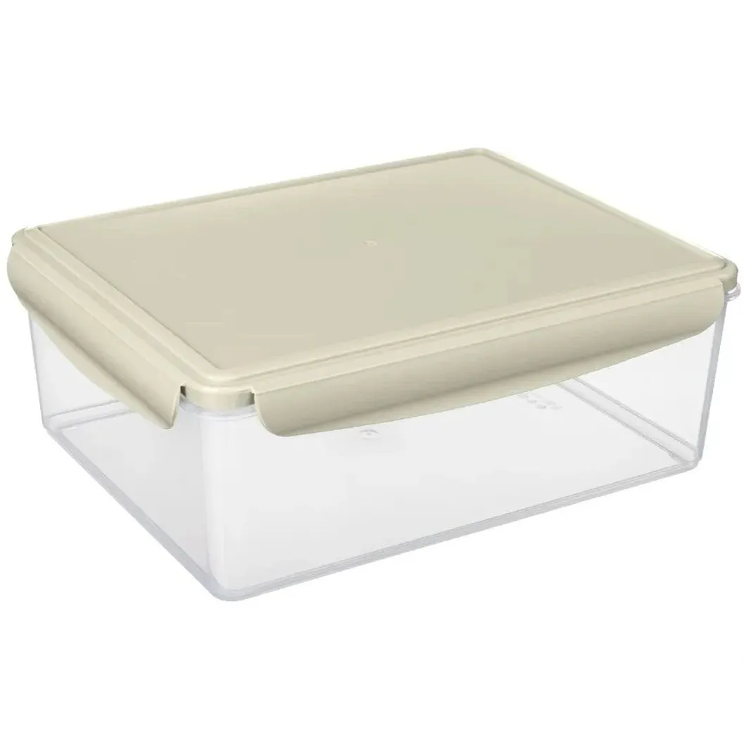 Объём 5,4 л подходит для хранения больших порций. Прозрачные стенки позволяют видеть содержимое без открытия крышки, а светло-серая крышка придаёт аккуратный внешний вид. Прочный пластик устойчив к регулярному использованию и легко очищается после применения.