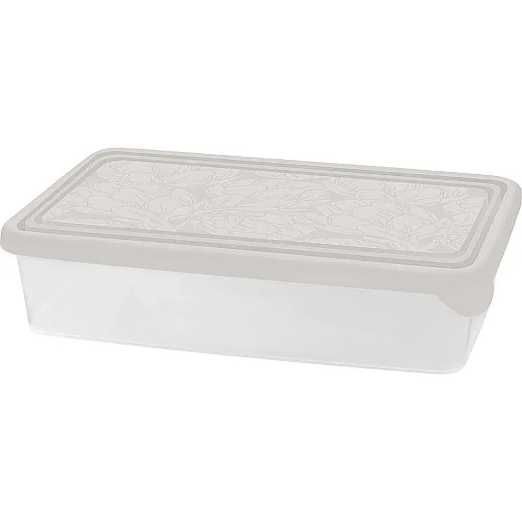 Герметичный пластиковый контейнер с элегантным декором — ваш надежный помощник в хранении продуктов. Практичная прямоугольная форма экономит место в холодильнике, а прозрачные стенки позволяют быстро найти нужное содержимое.