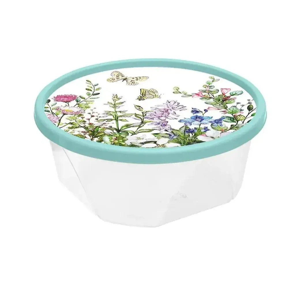 Контейнер для продуктов круглый 0,4л «Цветущий луг», прозрачный корпус, крышка с декором