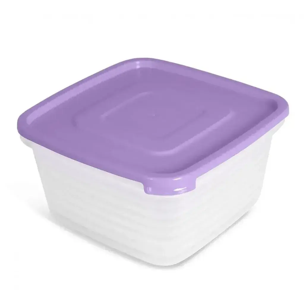 Контейнер для еды квадратный 0,9 л с герметичной крышкой, пластик, белый с фиолетовым, для СВЧ