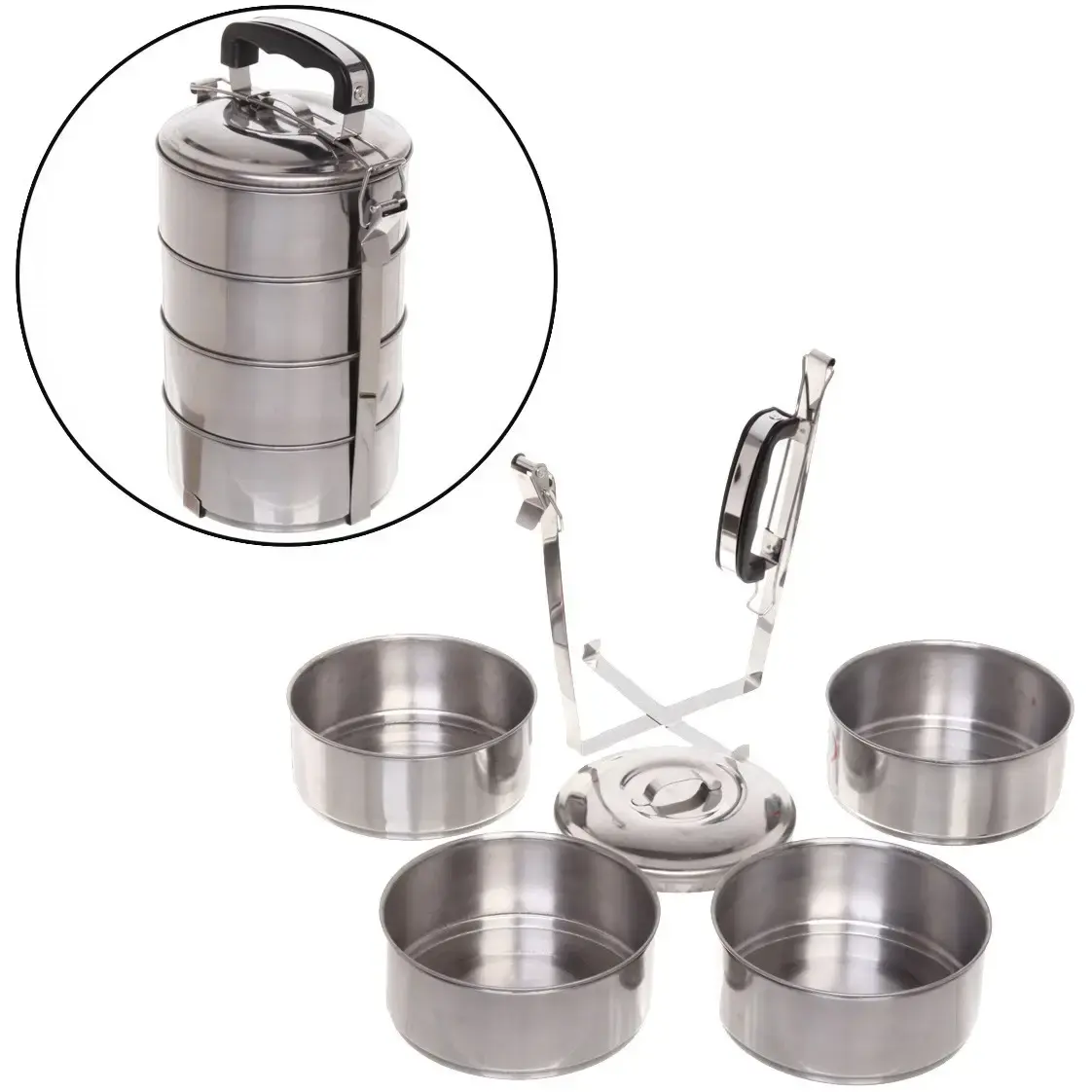 Ищете идеальный способ хранения и транспортировки еды? Наш металлический контейнер для продуктов с четырьмя уровнями — это ваш незаменимый помощник для активного отдыха и путешествий. Он обеспечивает надежную защиту ваших продуктов от внешних факторов, сохраняя их свежесть на долгое время.