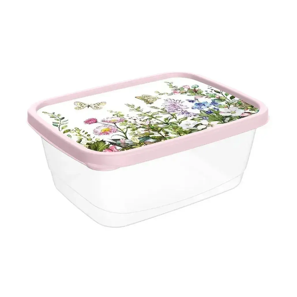 Контейнер пищевой прямоугольный 0,85л с декором «Цветущий луг», герметичная крышка, пластик
