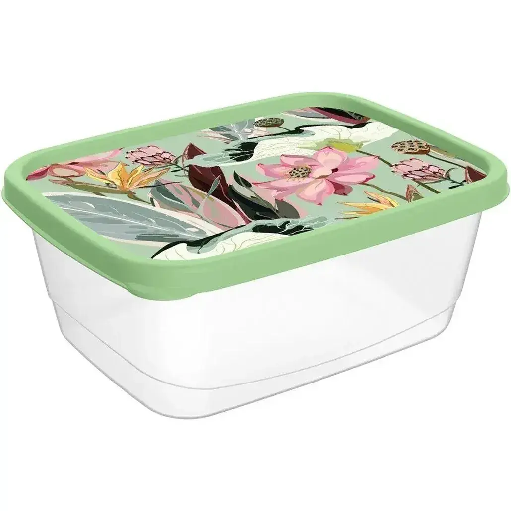 Контейнер для продуктов прямоугольный 1,5л с цветочным декором, пластик, цвет в ассортименте