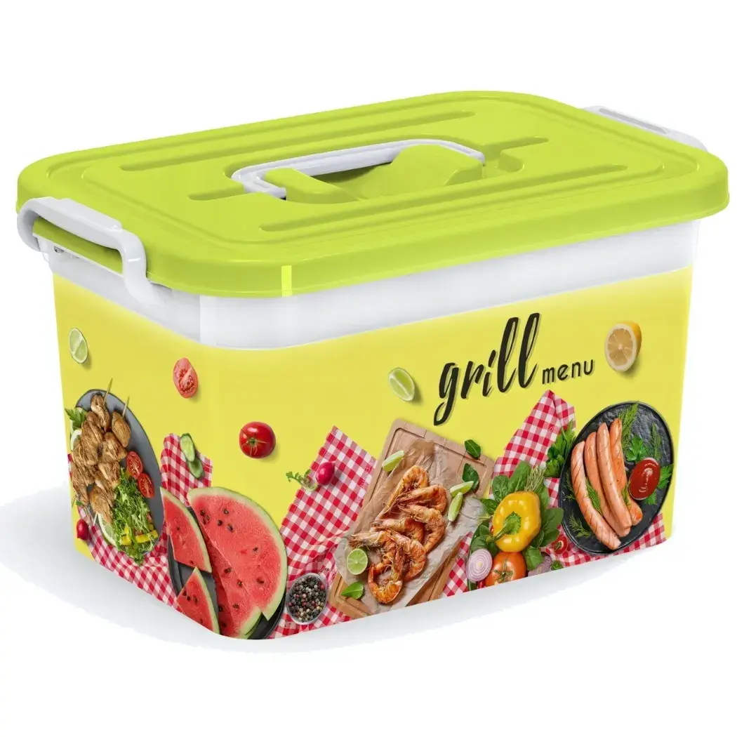 Контейнер для шашлыка 10л 'Grill menu', салатовый, пластик, с ручками