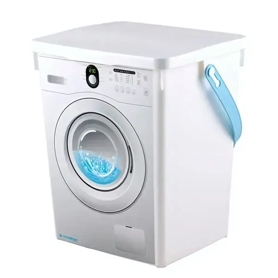 Подходит для хранения любых видов стиральных порошков и чистящих средств. Удобно размещается в кладовой или прачечной.