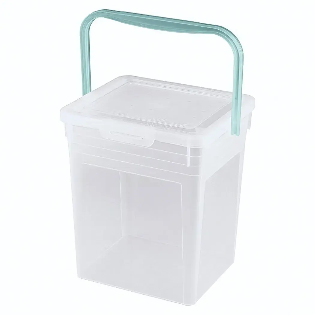 Контейнер выполнен из качественного пластика, что обеспечивает его легкость и прочность. Он имеет прямоугольную форму и прозрачный цвет, что позволяет видеть содержимое. Синяя ручка добавляет яркий акцент и облегчает переноску. Этот контейнер станет незаменимым помощником в вашем доме, обеспечивая порядок и удобство в хранении стирального порошка.