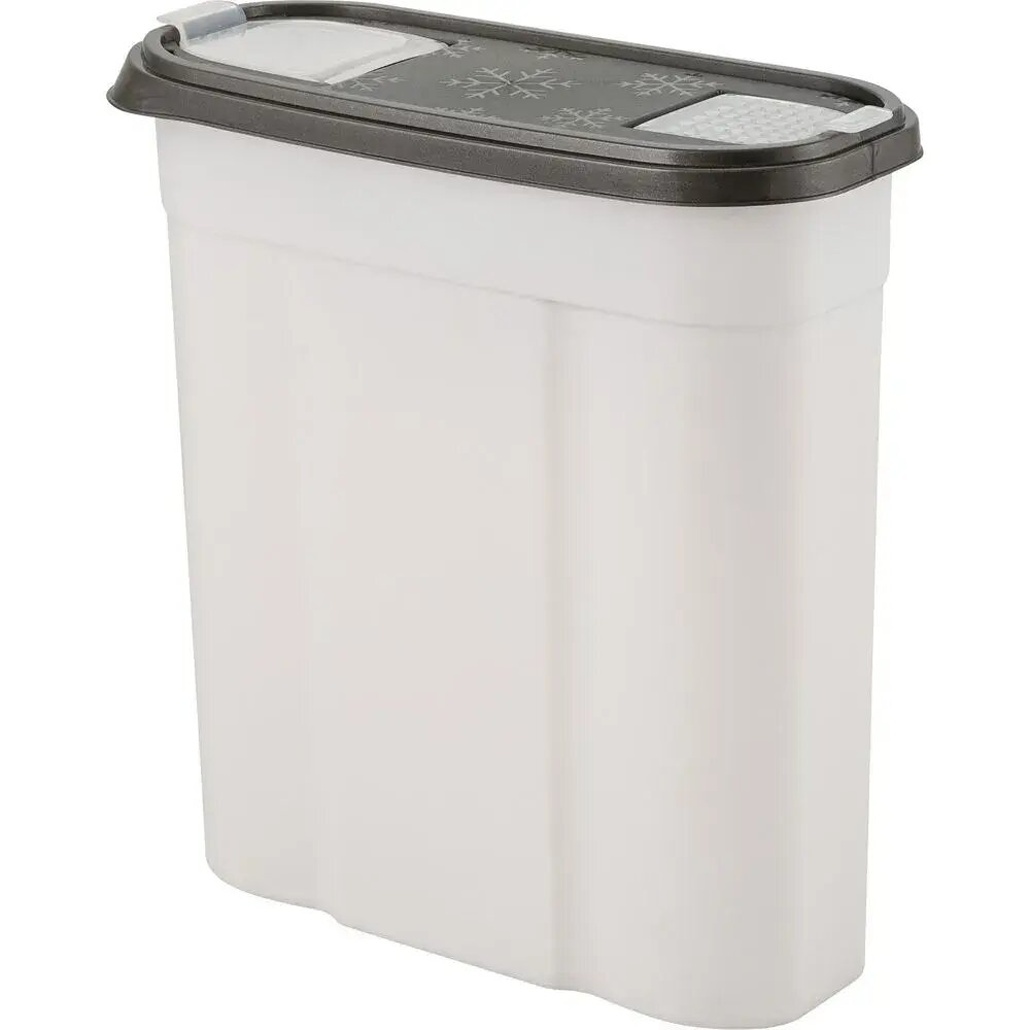 Полупрозрачный корпус позволяет контролировать остаток содержимого, а плотно прилегающая крышка предотвращает просыпание. Специальные ребра жесткости обеспечивают устойчивость конструкции даже при полной загрузке.
