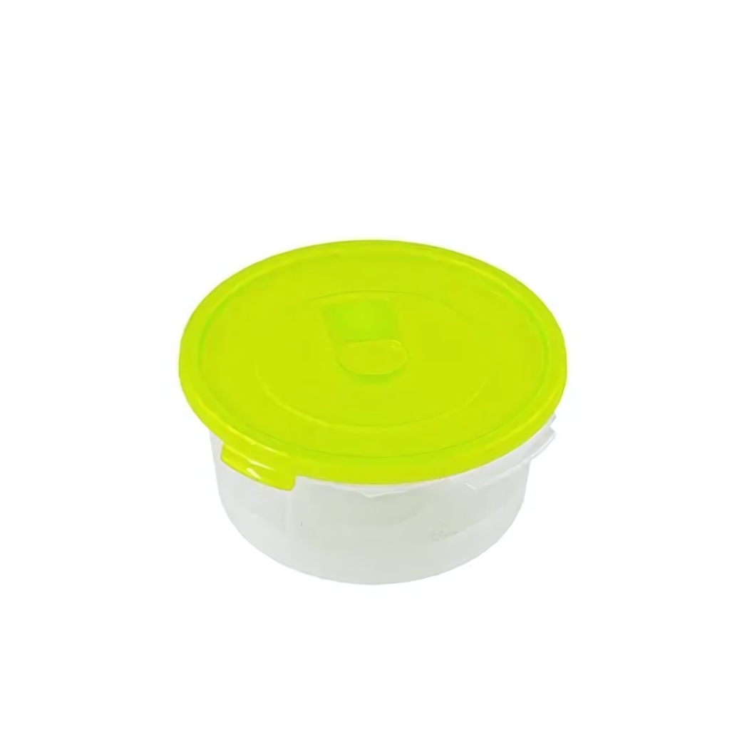 Контейнер для микроволновки круглый 0,8 л с клапаном, прозрачный, крышка салатового цвета