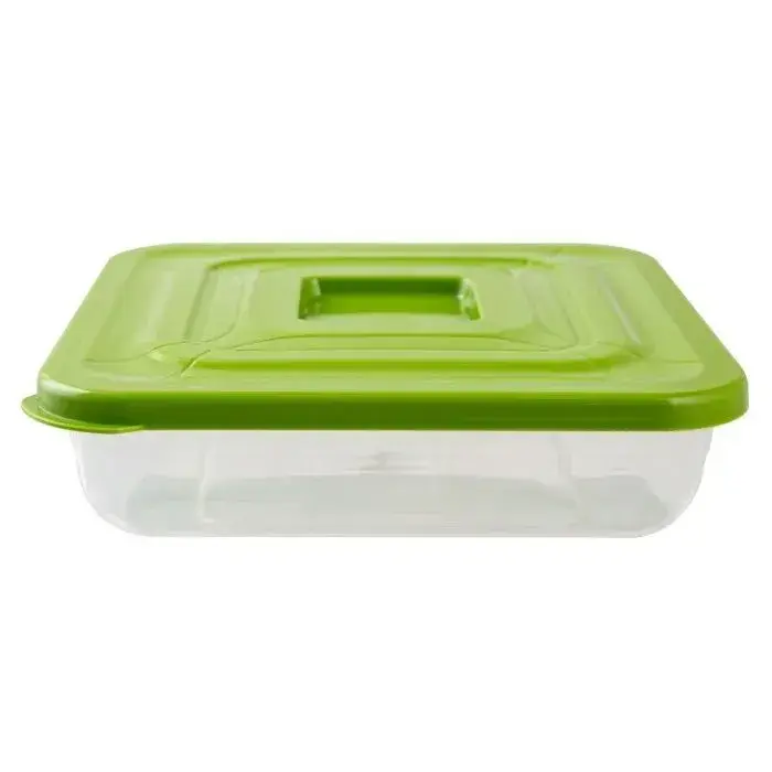 Контейнер объёмом 0,9 литра оптимален для порционного хранения ингредиентов и готовых блюд. Зелёная крышка из прочного пластика устойчива к деформации при нагреве. Прямоугольная форма позволяет эргономично размещать ёмкость на полках.