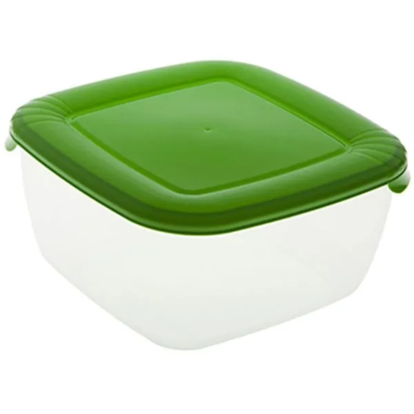 - Удобная форма: Квадратная форма со скруглёнными углами позволяет компактно размещать контейнер в холодильнике и эффективно использовать пространство.