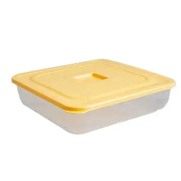 Цвет крышки — желтый, основание — прозрачное. Размеры оптимальны для небольших порций. Контейнер универсален, подойдет для дома, офиса, организации пространства и транспортировки блюд. Надежная конструкция и современный дизайн делают его незаменимым аксессуаром для ежедневного использования.