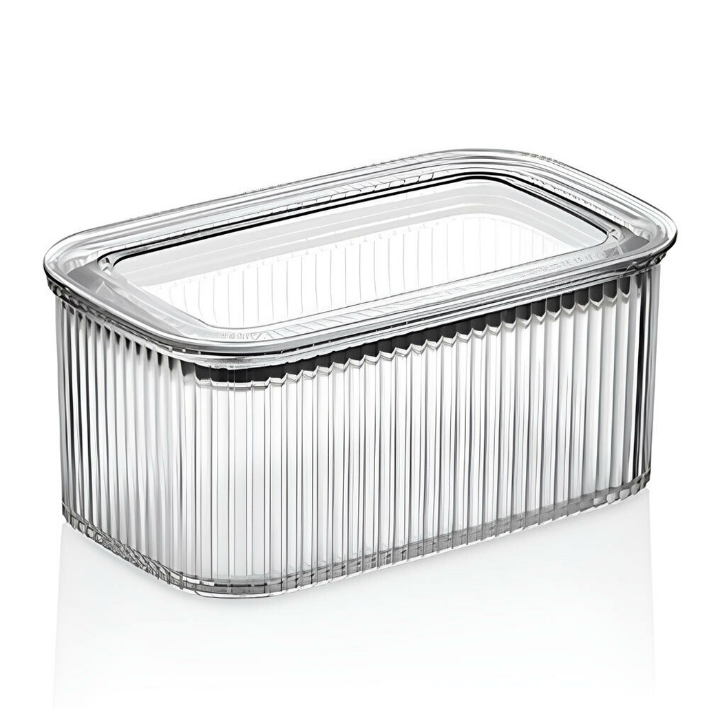 - Прямоугольная форма с рельефными стенками – устойчивость и удобное хранение.