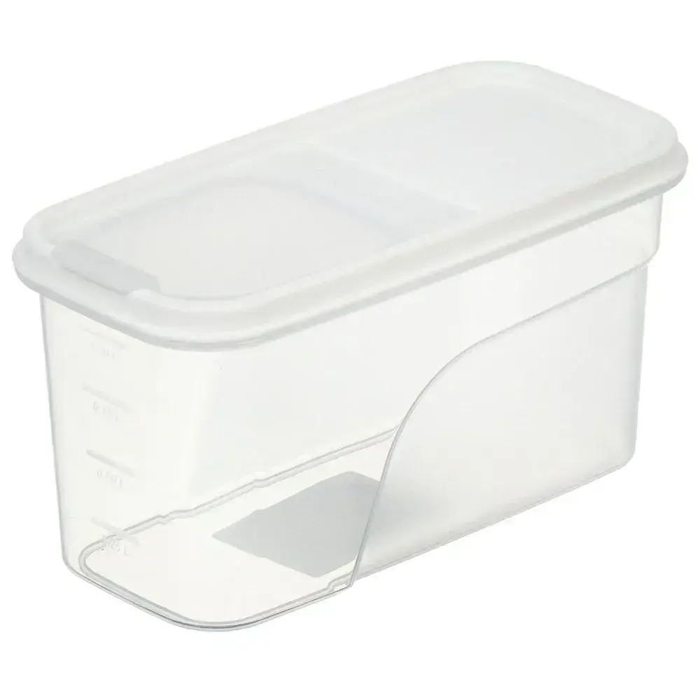 Объём контейнера — 1,2 литра, вместимости достаточно для большинства кухонных задач. Белая крышка смотрится аккуратно и визуально подходит к любой кухне. Прямоугольная форма с закруглёнными краями делает контейнер устойчивым и удобным для размещения в шкафах, на полках или рабочей поверхности. Надёжный пластик не впитывает запахи и сохраняет свежесть продуктов. Контейнер поможет экономить место и быстро находить нужный ингредиент. Такой аксессуар станет незаменимым помощником для поддержания порядка на кухне и экономии времени.