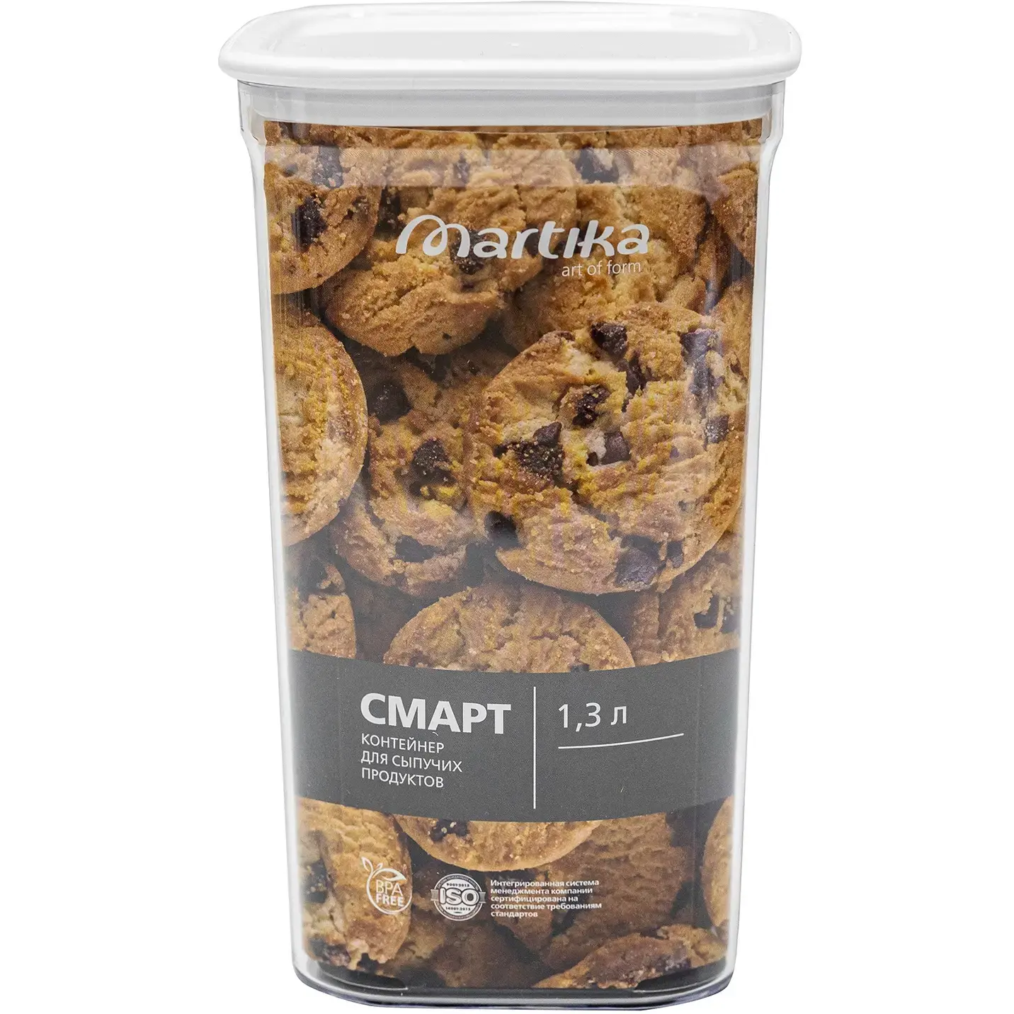 Контейнер выполнен из безопасного пластика, не содержащего BPA, что делает его идеальным для хранения продуктов. Объем 1,3 литра позволяет хранить стандартные упаковки (до 1 кг) различных сыпучих продуктов. Размеры контейнера оптимальны для удобного размещения на кухонных полках.