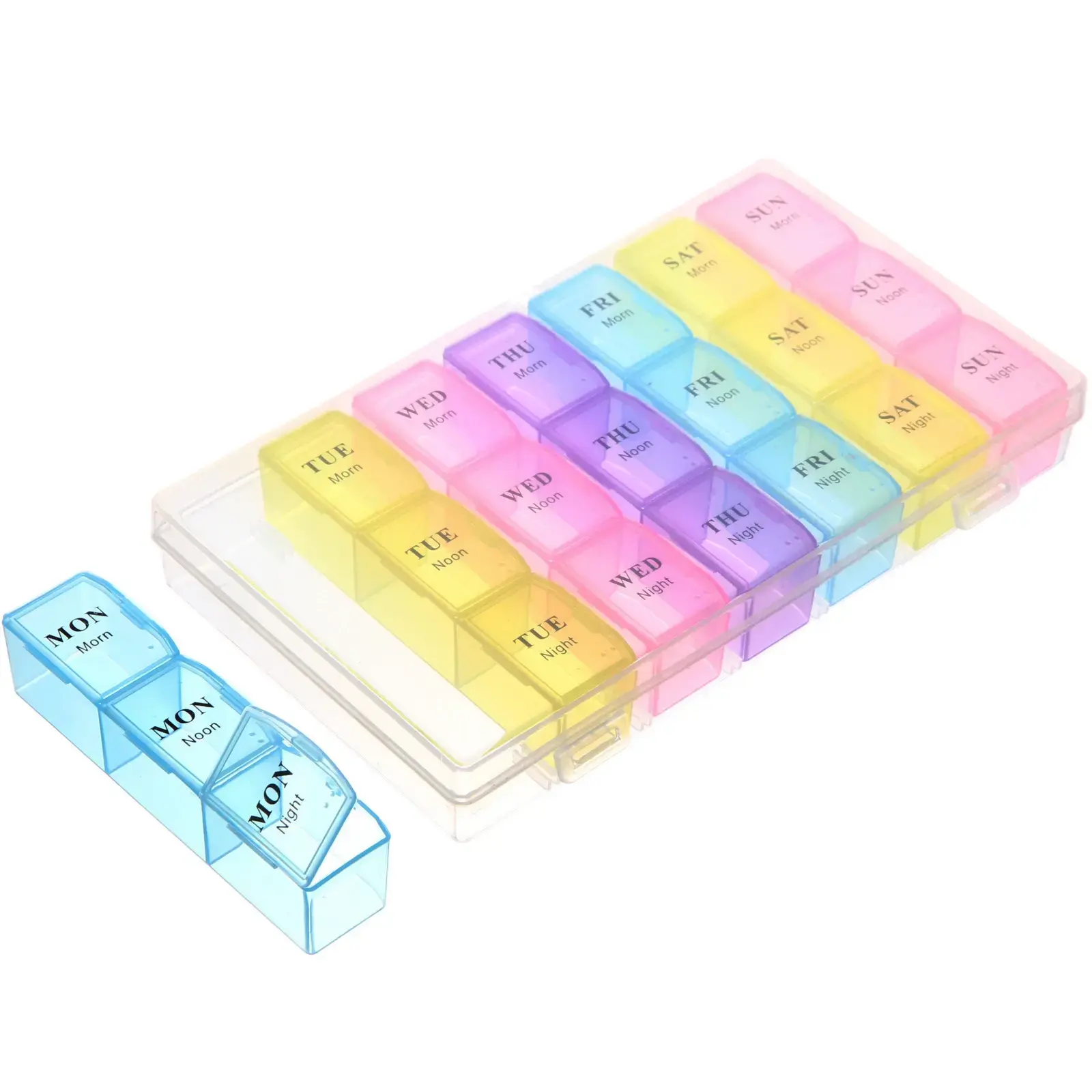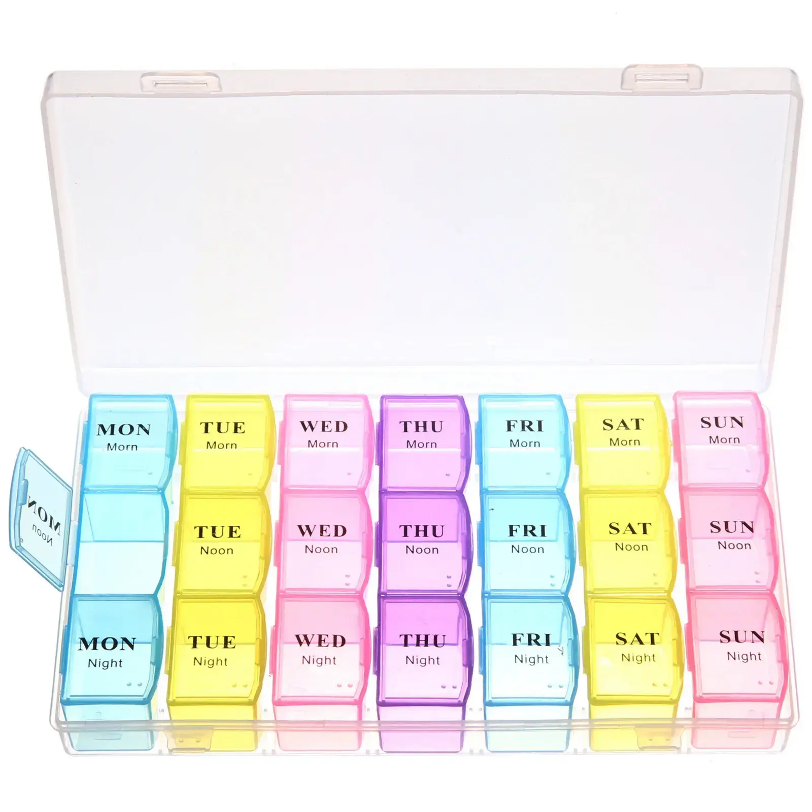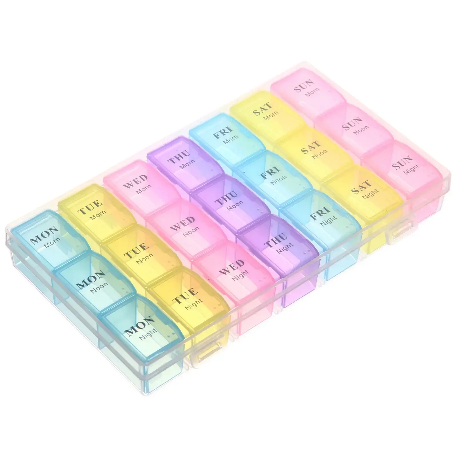 Контейнер для таблеток состоит из 21 ячейки, каждая из которых подписана с указанием дня недели и времени суток. Это позволяет вам заранее подготовить все необходимые лекарства, чтобы не забыть о них в нужный момент. Органайзер подходит для всех, кто заботится о своем здоровье и хочет упорядочить прием медикаментов.