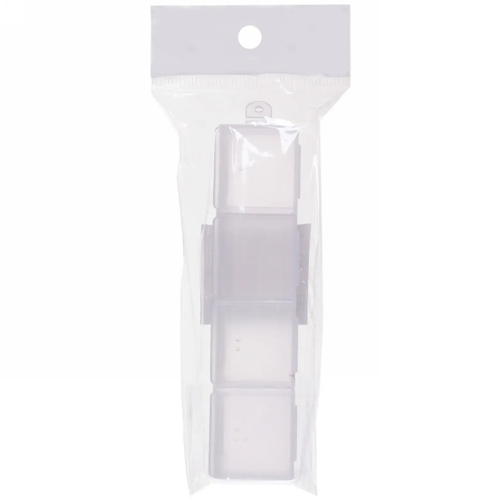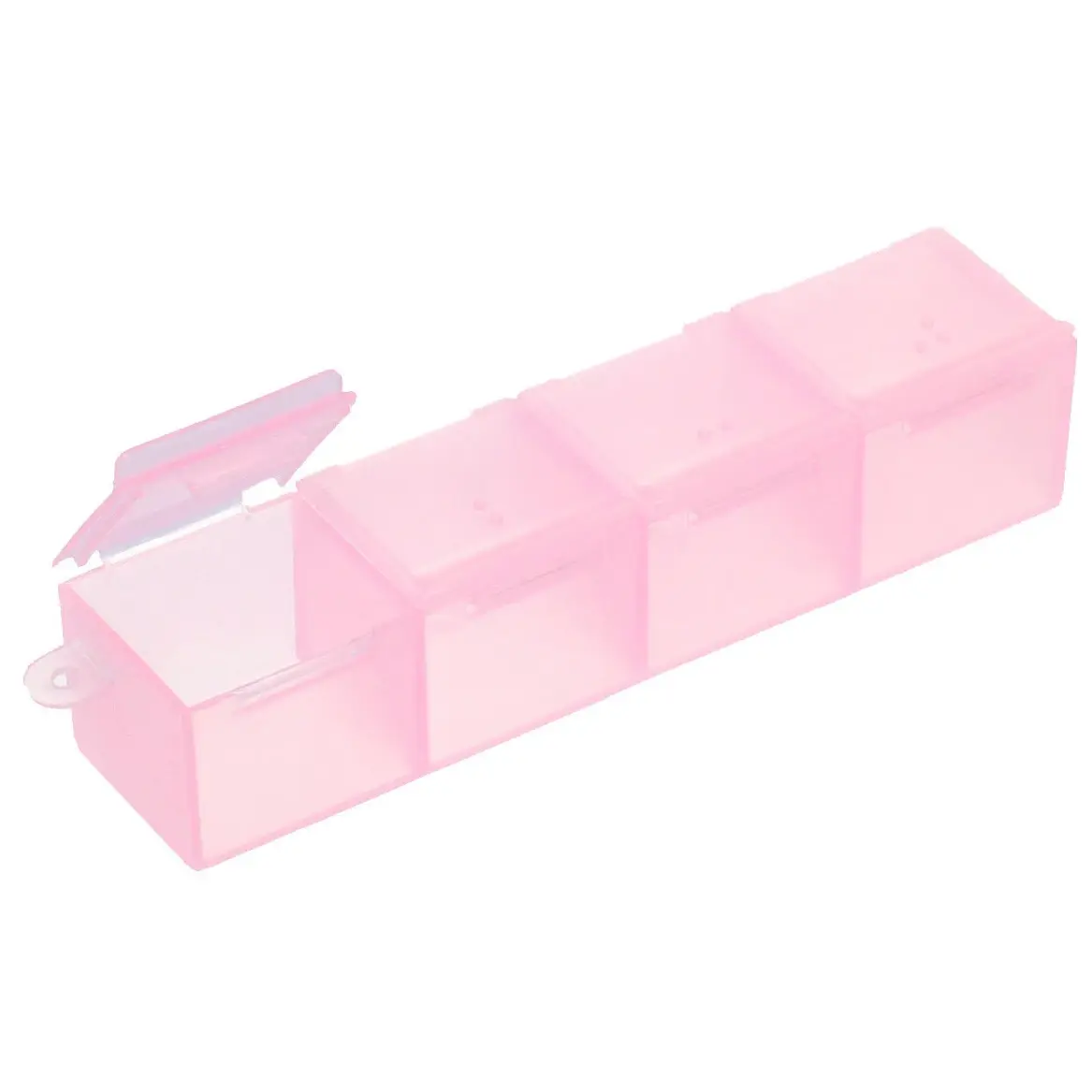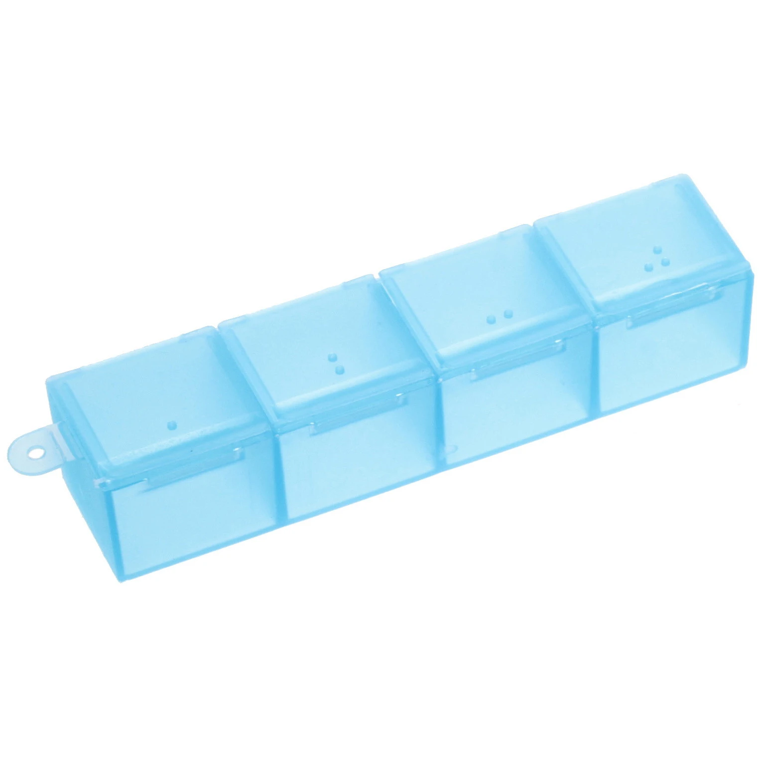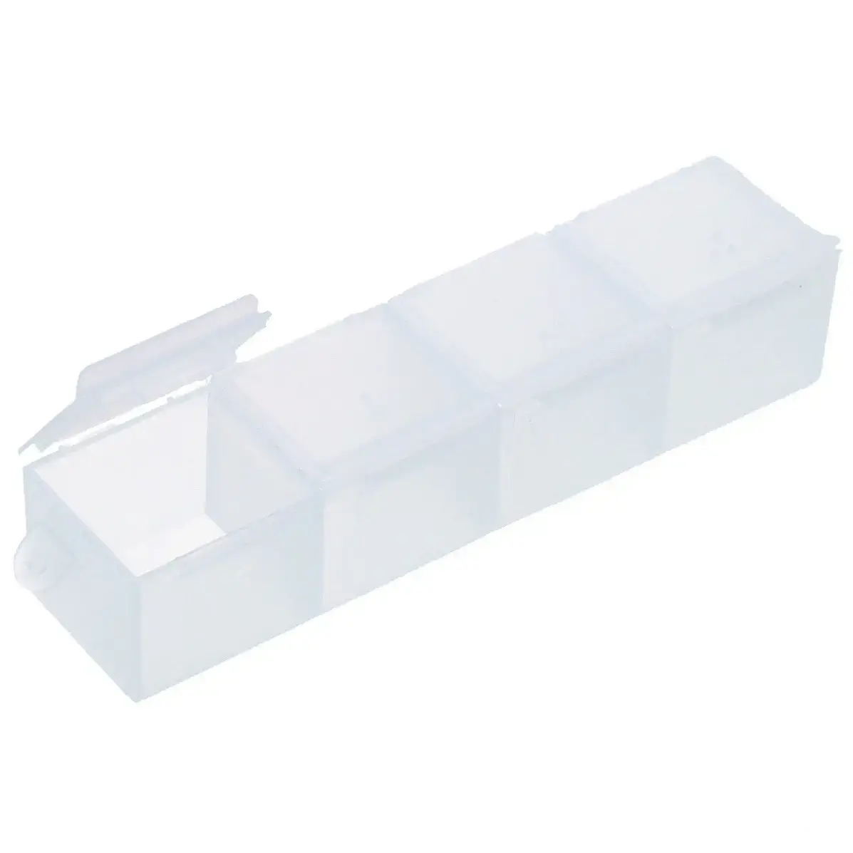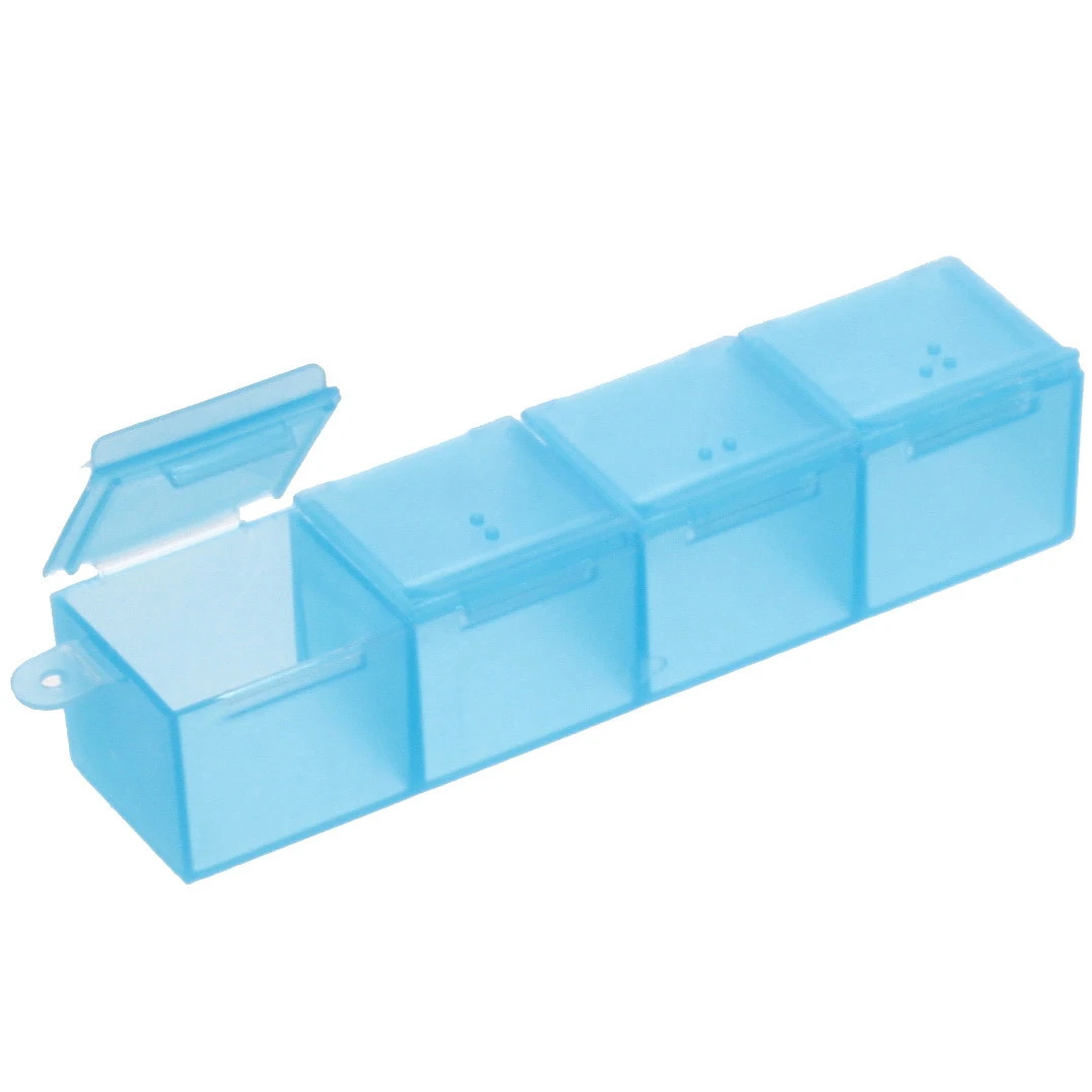 Органайзер состоит из 4 ячеек, каждая из которых закрывается крышкой, что обеспечивает надежное хранение содержимого. Таблетница выполнена из прочного и легкого пластика, что позволяет видеть содержимое и легко открывать каждую ячейку. Она идеально подходит для хранения не только таблеток, но и мелких аксессуаров, таких как бисер, канцелярские принадлежности или даже украшения.