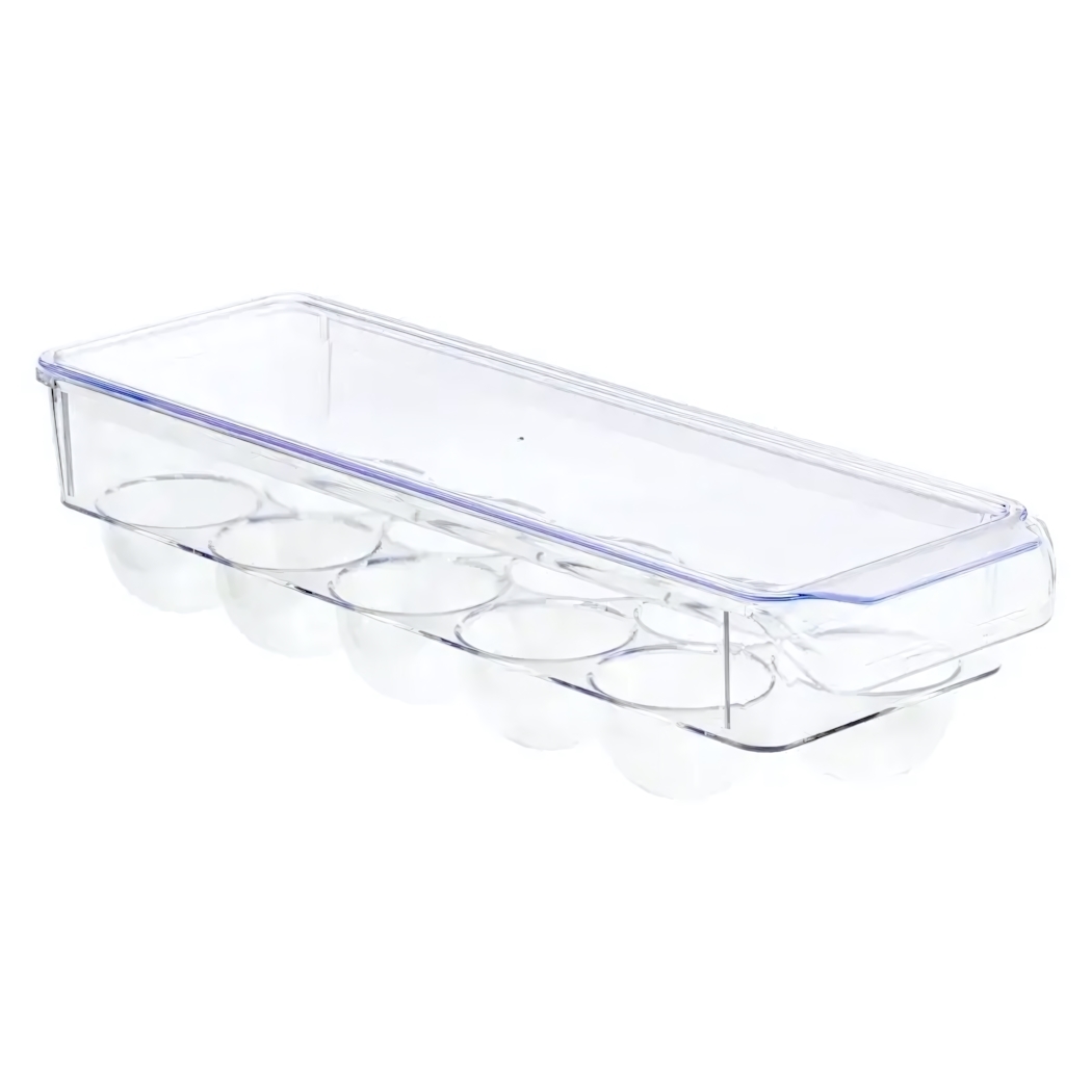 Прозрачный контейнер для яиц с герметичной крышкой сохранит продукты от посторонних запахов и продлит их свежесть. Удобная конструкция с отдельными ячейками защищает хрупкую скорлупу от повреждений во время хранения.
