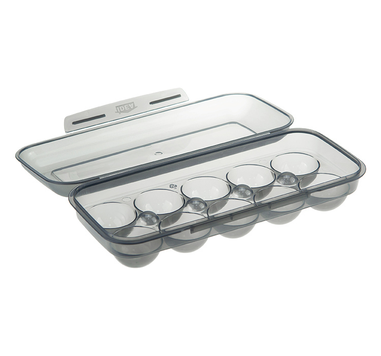 Контейнер выполнен из прочного пластика с прозрачной крышкой, что позволяет быстро видеть содержимое без открытия. Защелкивающийся механизм надежно фиксирует крышку, предотвращая случайное раскрытие и сохраняя яйца целыми при транспортировке или хранении.