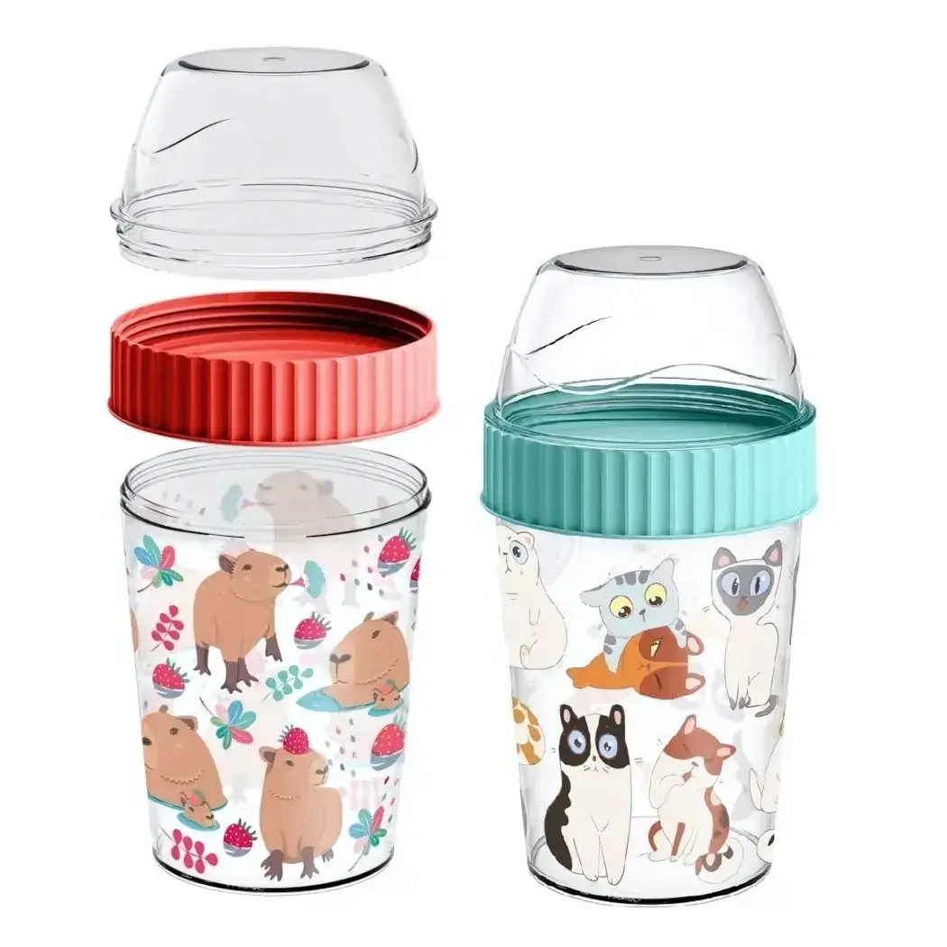 Начните день с позитива, выбирая стильный контейнер для завтрака объемом 440мл. Милые изображения капибар или котиков создают настроение и превращают обычную трапезу в особенный момент.