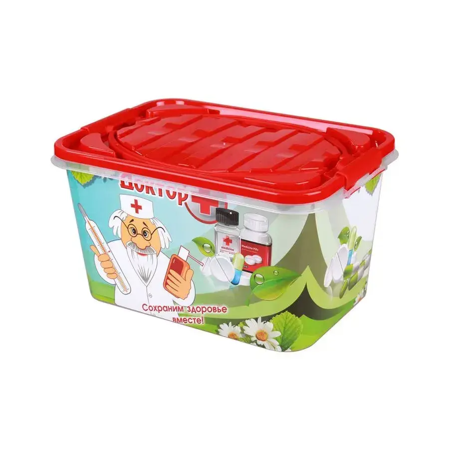 Контейнер для хранения медицинских принадлежностей «Доктор», 15л, комплект из 8 штук, прозрачный/цветной пластик