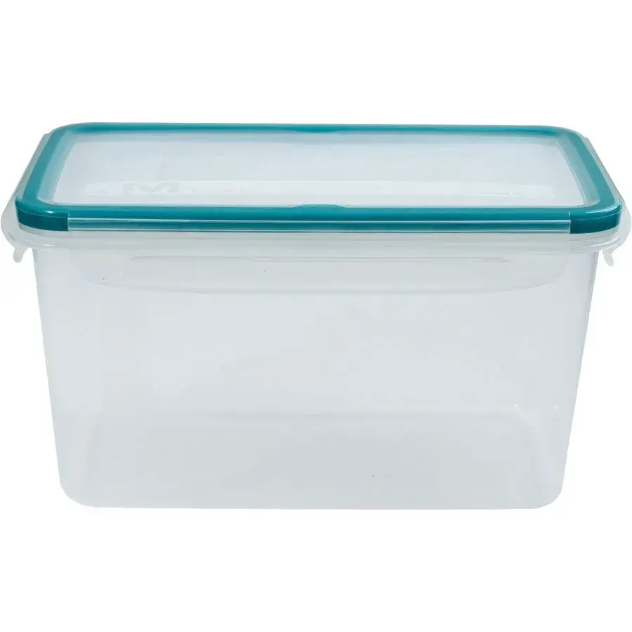 Оцените практичность и комфорт организации пространства с прямоугольным контейнером объемом 2 литра. Он изготовлен из прозрачного пластика, благодаря чему содержимое всегда видно, а поиск нужных вещей или ингредиентов занимает секунды. Бирюзовая окантовка крышки добавляет стильный акцент, который приятно смотрится на кухне или в кладовой.