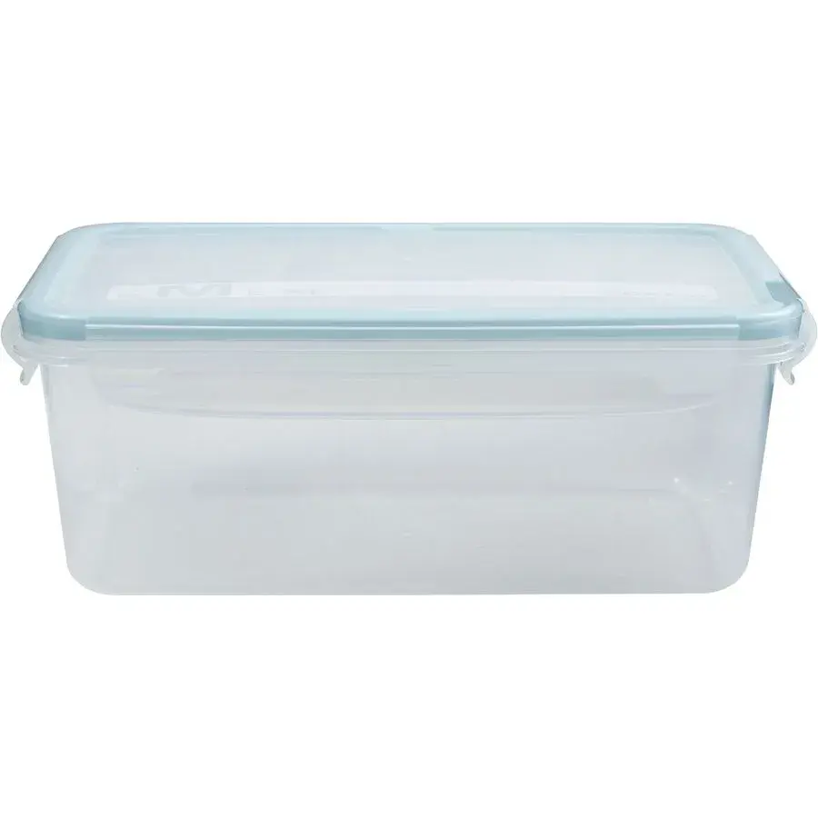 Этот контейнер из прозрачного пластика идеально подходит для хранения разнообразных продуктов, обеспечивая их свежесть и удобство использования. Благодаря плотной крышке светло-голубого цвета он надежно фиксируется и сохраняет герметичность, что предотвращает протечки и запахи. Контейнер прост в использовании, его удобно мыть и хранить в холодильнике или шкафу.