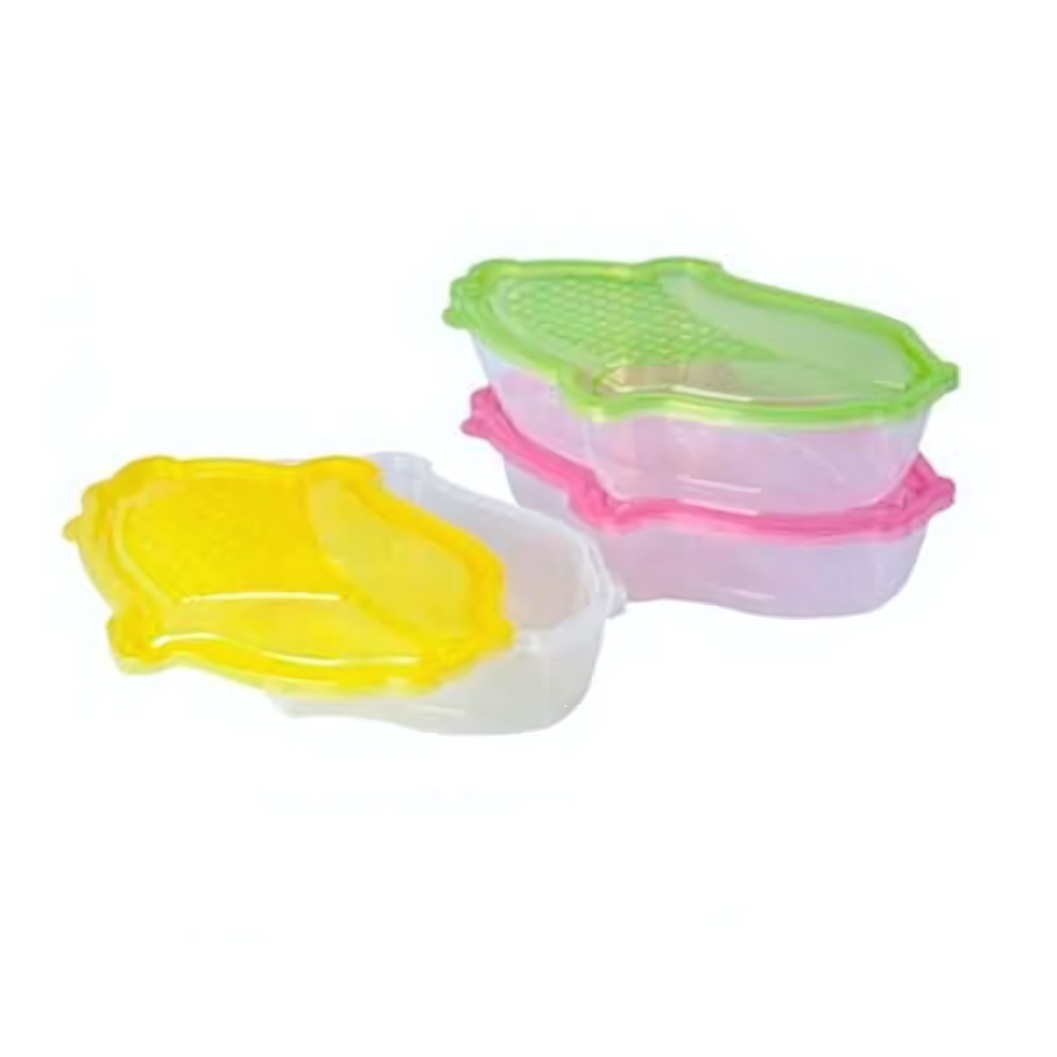 Благодаря фигурной форме контейнер удобно держать в руках, а рельефная крышка плотно прилегает к основанию.