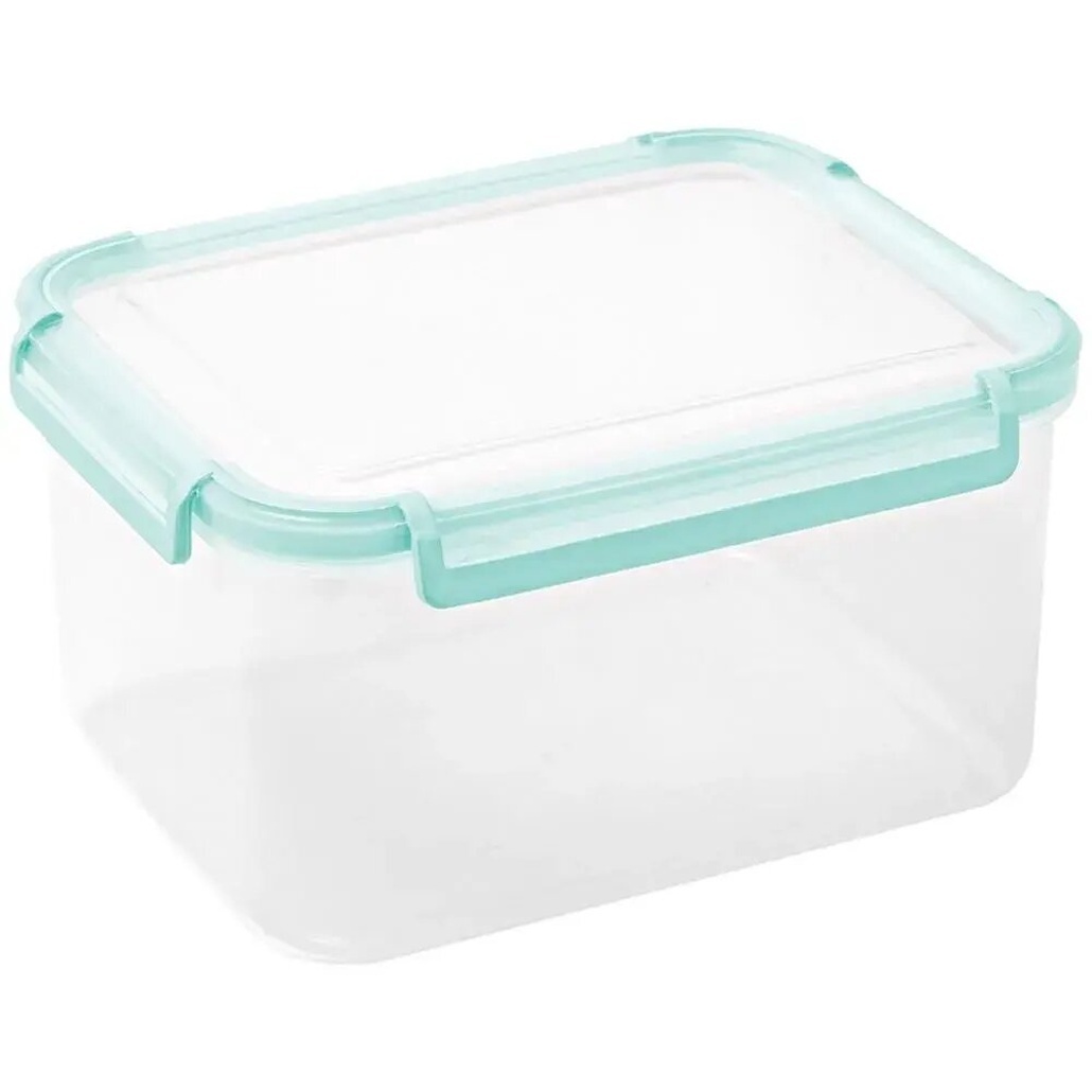Герметичный контейнер 0,75л с защелками, прямоугольный, прозрачный с голубой крышкой